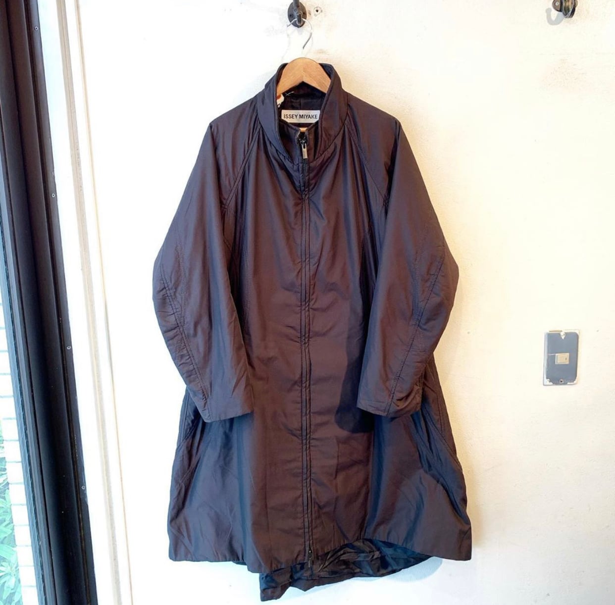 "ISSEY MIYAKE" ● charcoal gray stand collar zip up long coat