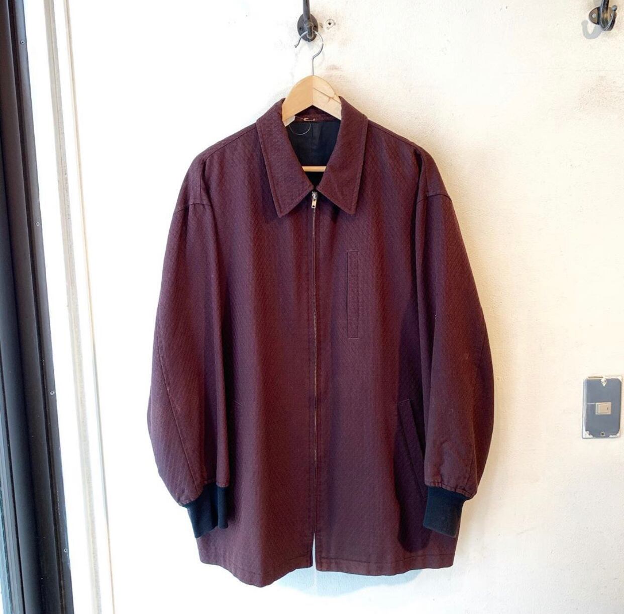 "GARÇONS HOMME" red brown wool&cotton jacquard zip up long blouson