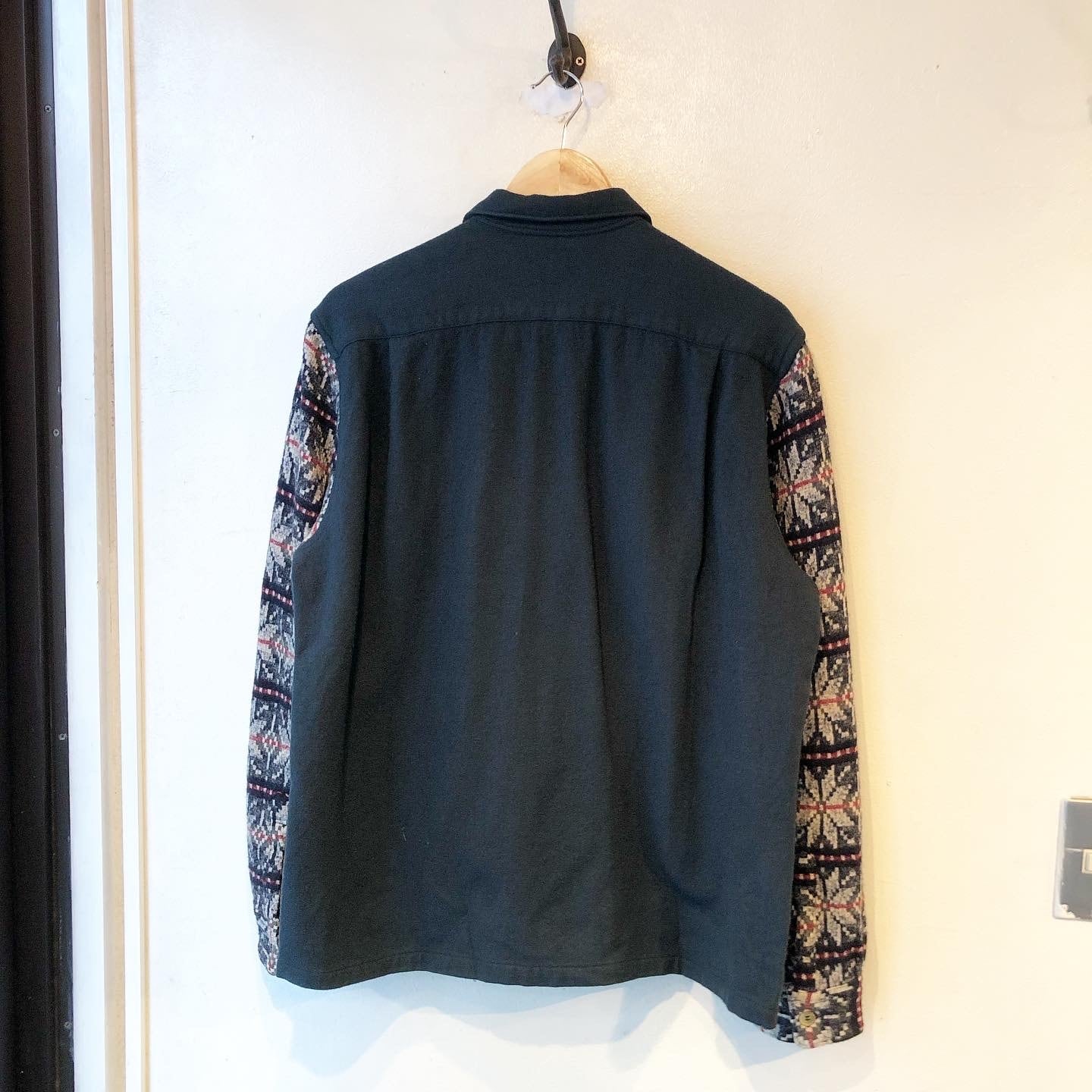 "GARÇONS HOMME" Navy wool × nylon design L/S switch shirt