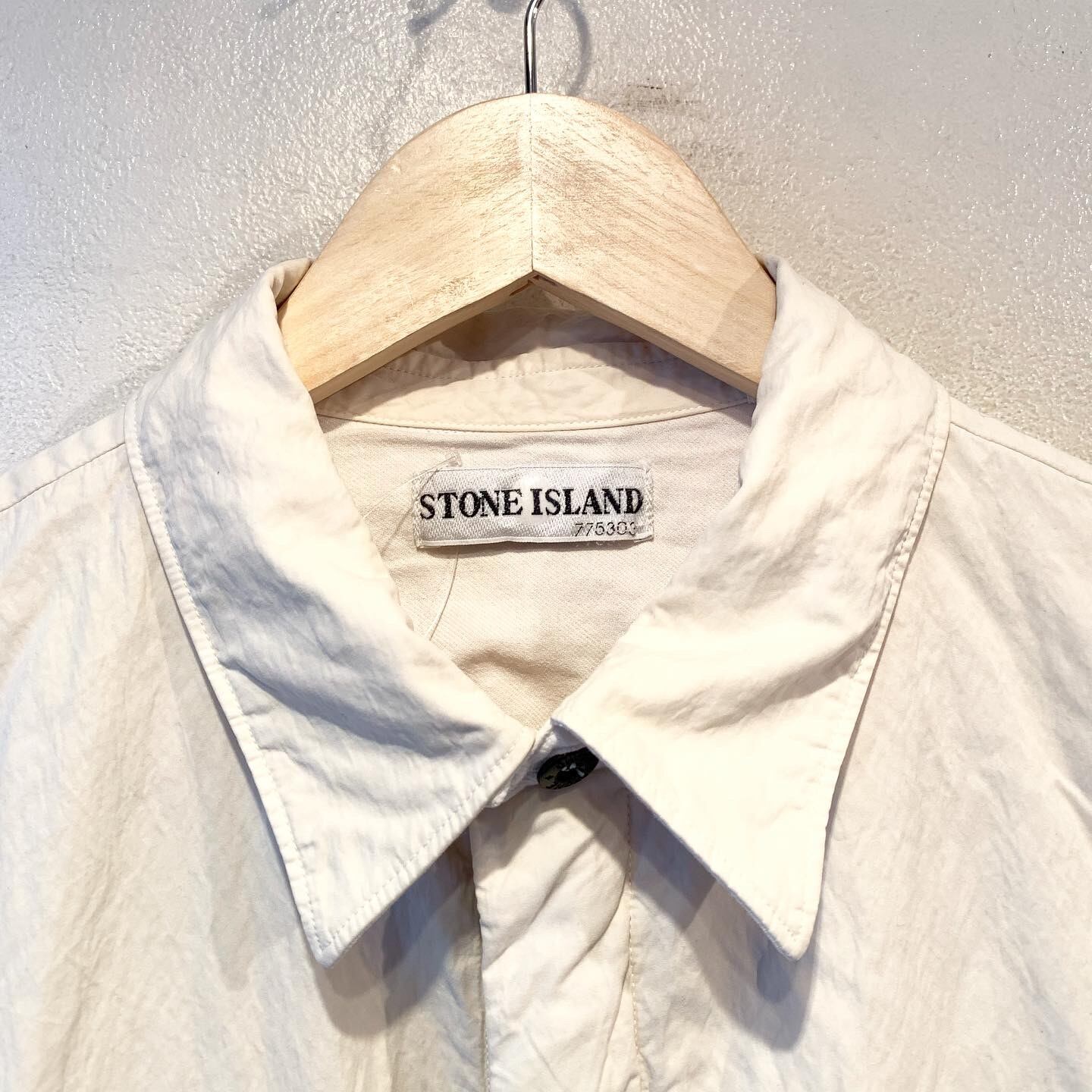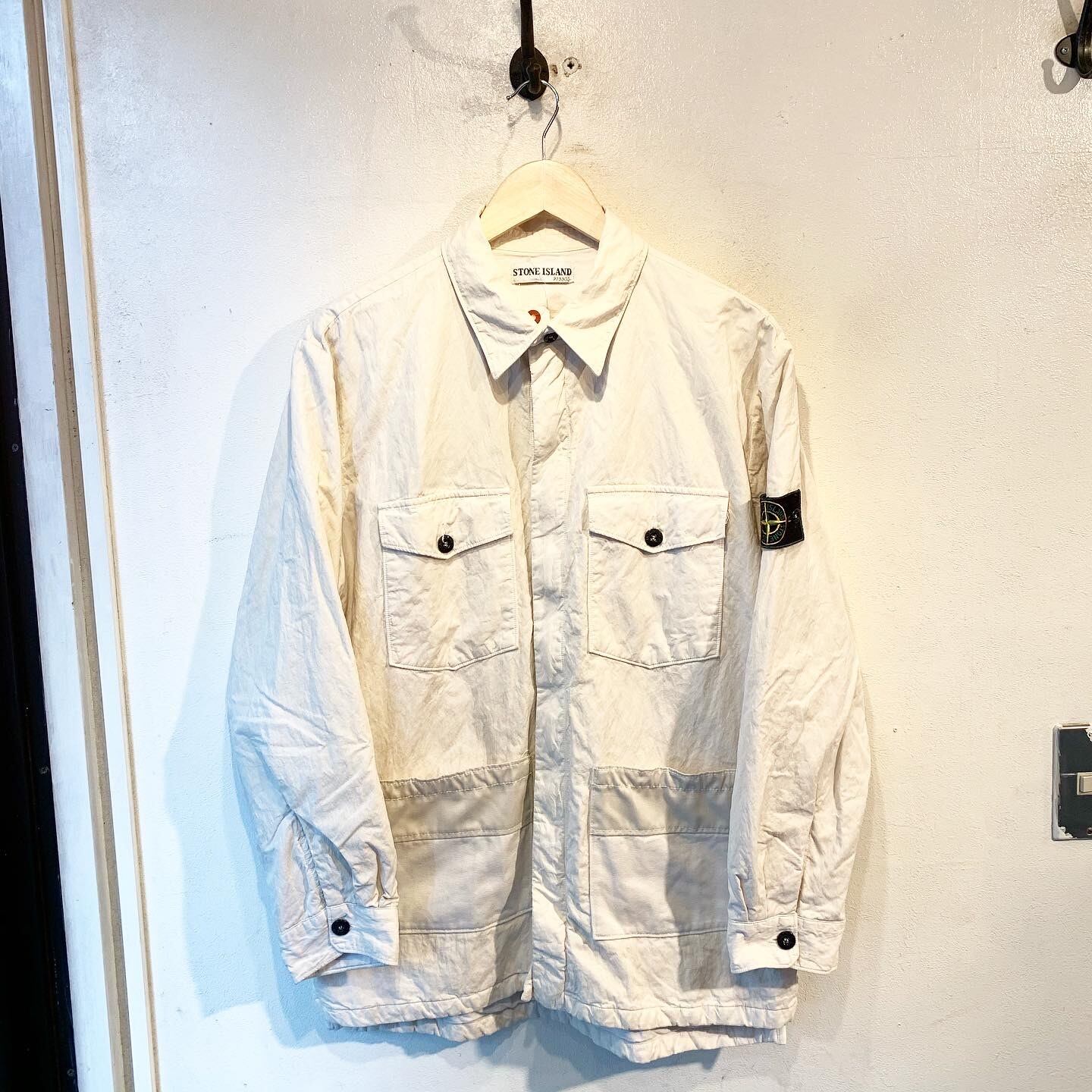 "STONE ISLAND" off white cotton&nylon design zip up blouson