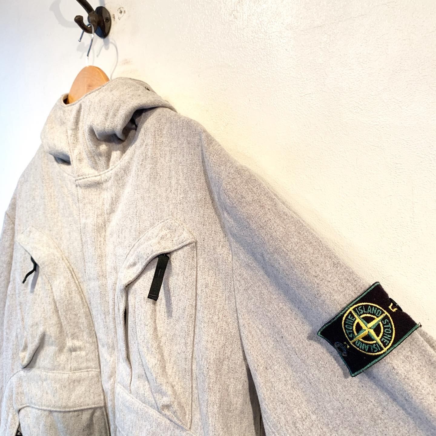 "STONE ISLAND" light gray wool&nylon design hoodie blouson