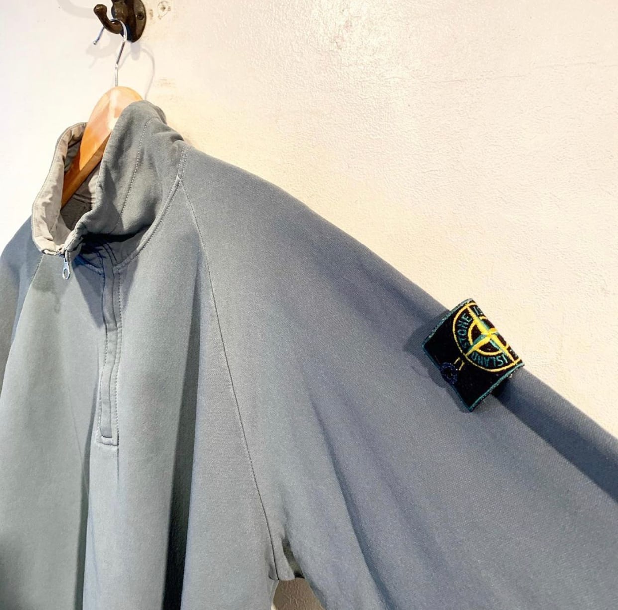 "STONE ISLAND" Cotton×nylon design half zip pullover