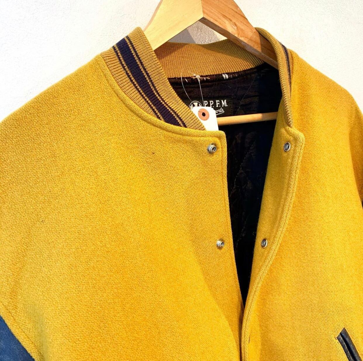 "PEYTON PLACE FOR MEN" ● mustard wool&nylon x black eather award jacket