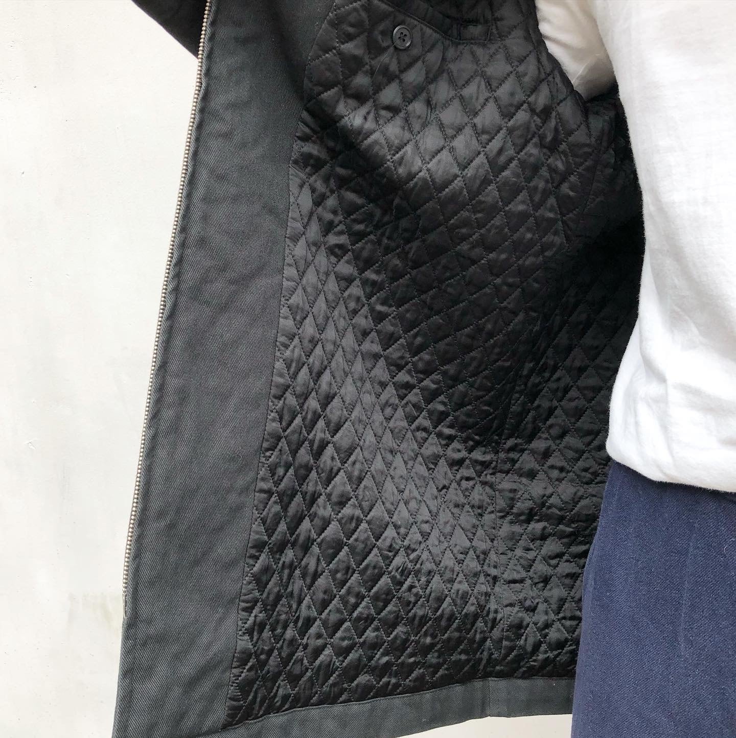 "Y's for men" quilting lining black cotton design double zip upg coat