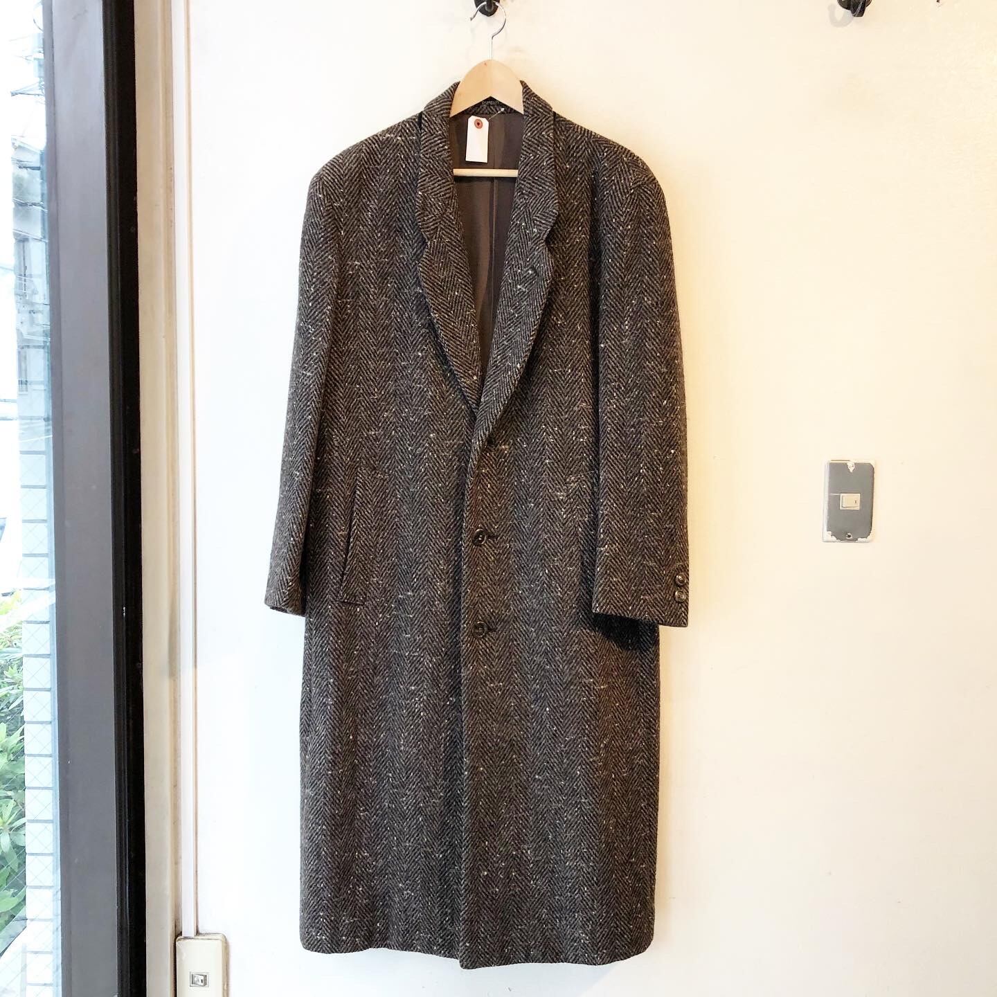 "DOMON" dark brown wool&nylon tweed chesterfield long coat