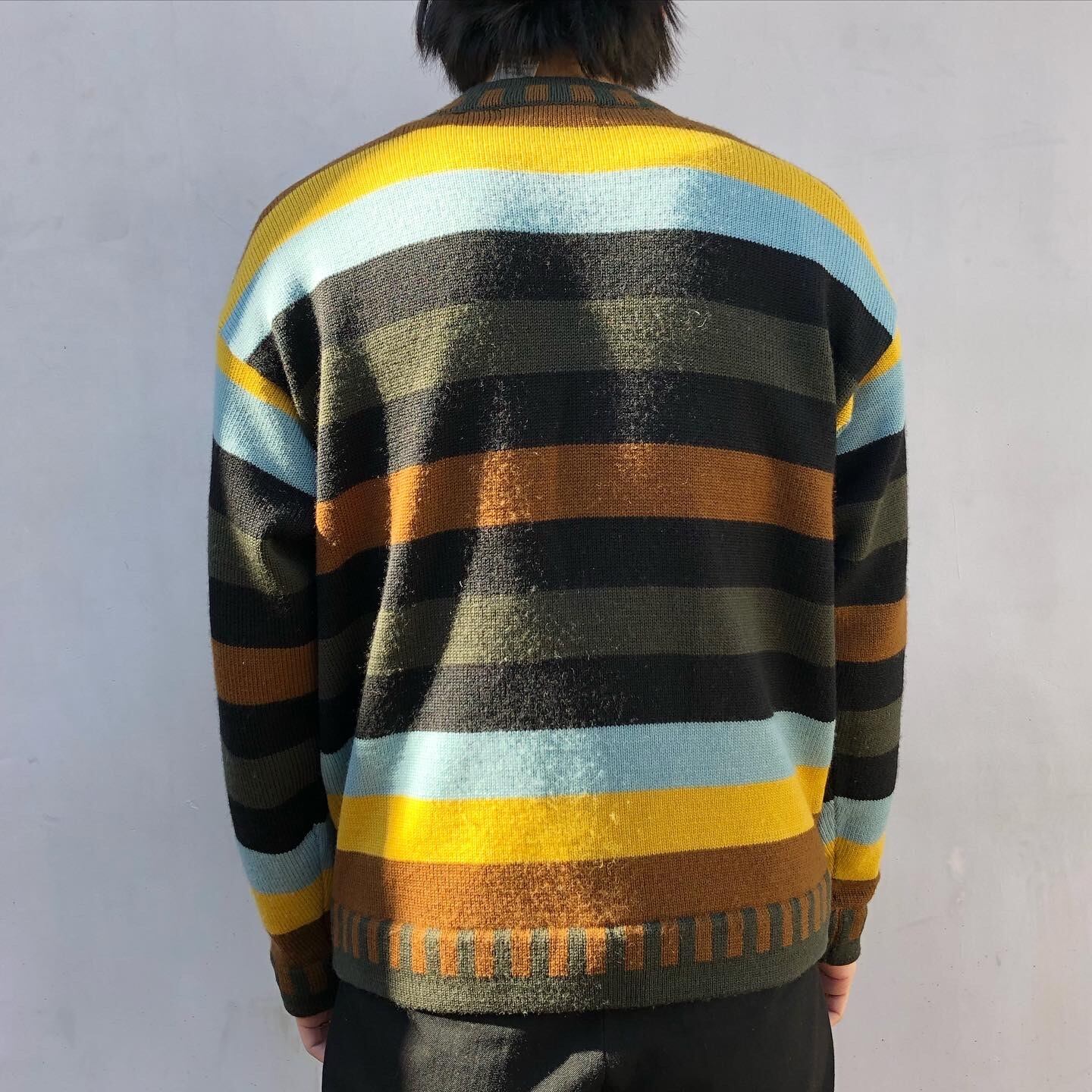 "GRASS MEN'S" multi border wool design crewneck sweater
