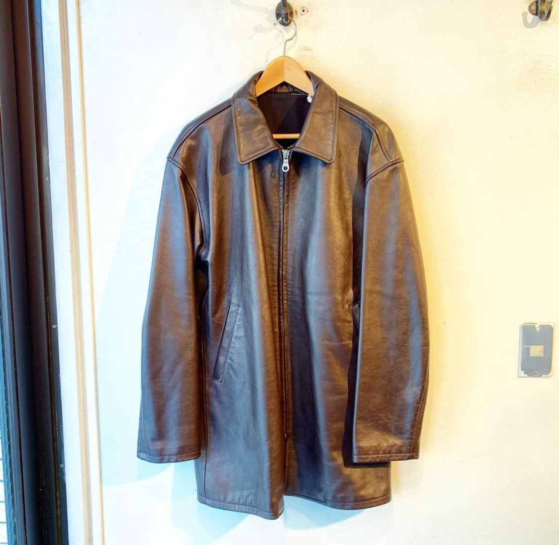 "Yohji Yamamoto A.A.R" dark brown cow leather zip up half coat