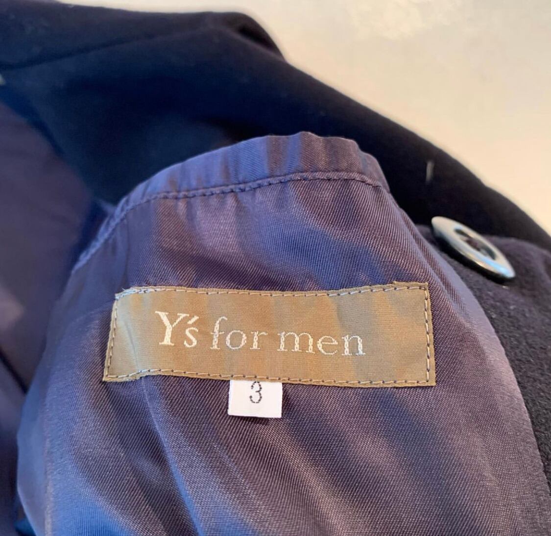 "Y's for men" dark navy wool design long pea coat