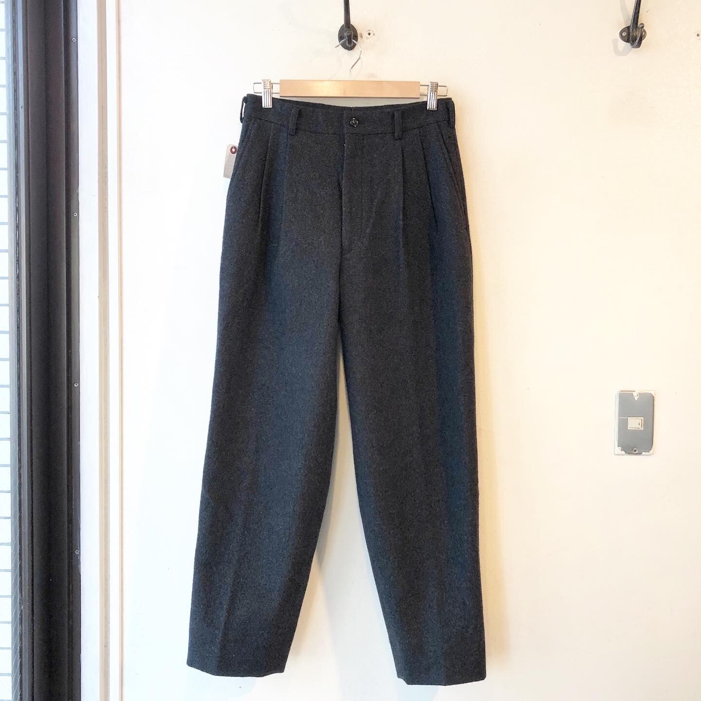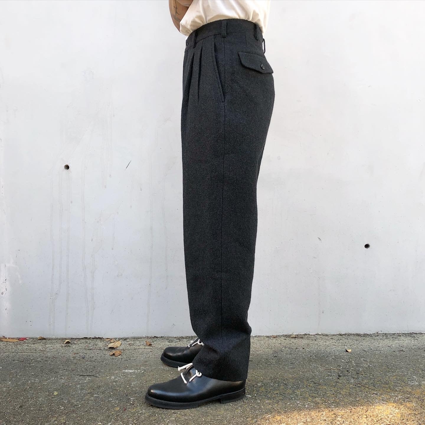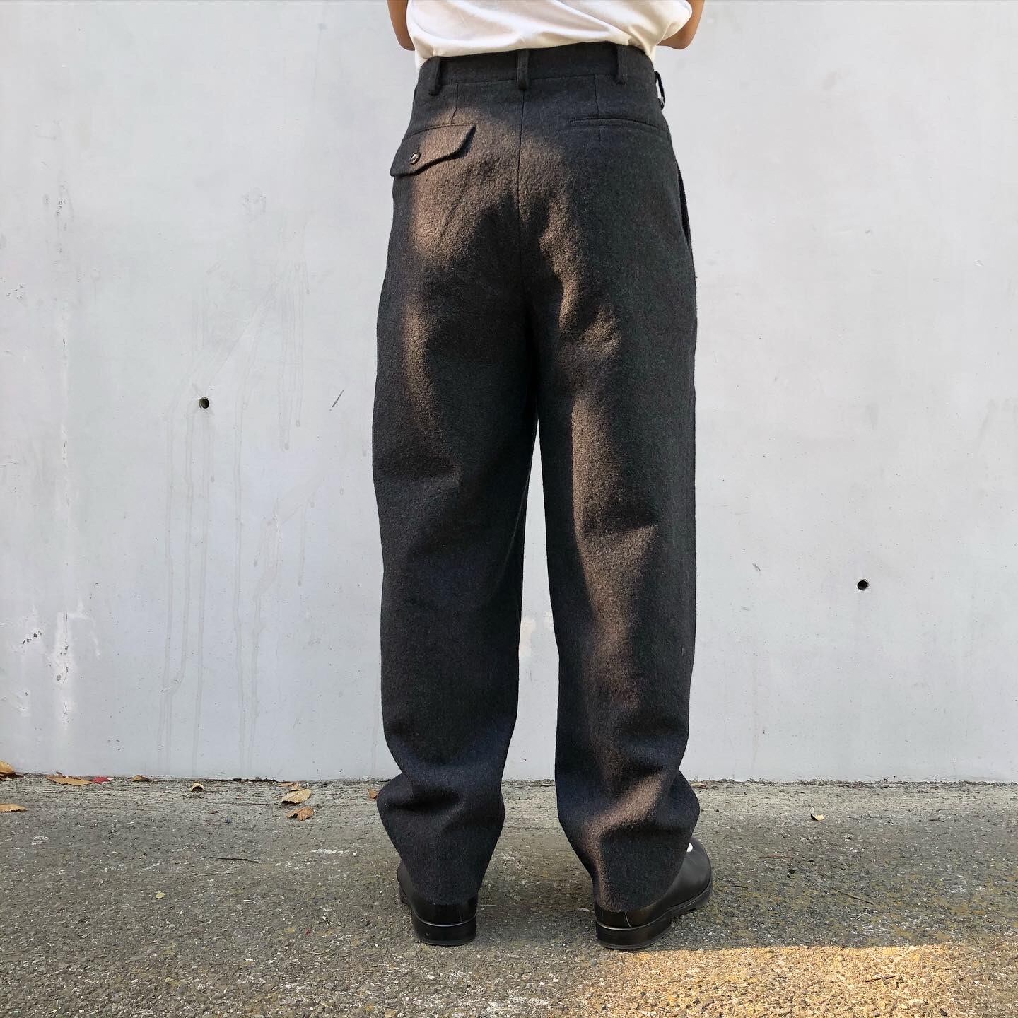 “GARÇONS HOMME" dark grey wool design 2tack wide slacks