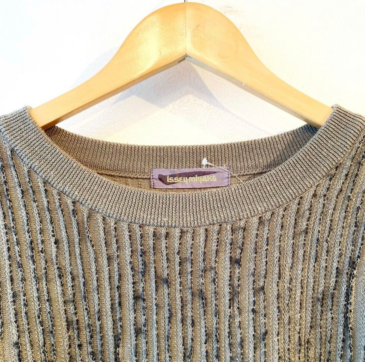"ISSEY MIYAKE" ● Khaki wool/acryl unique fabric 3D crew neck sweater