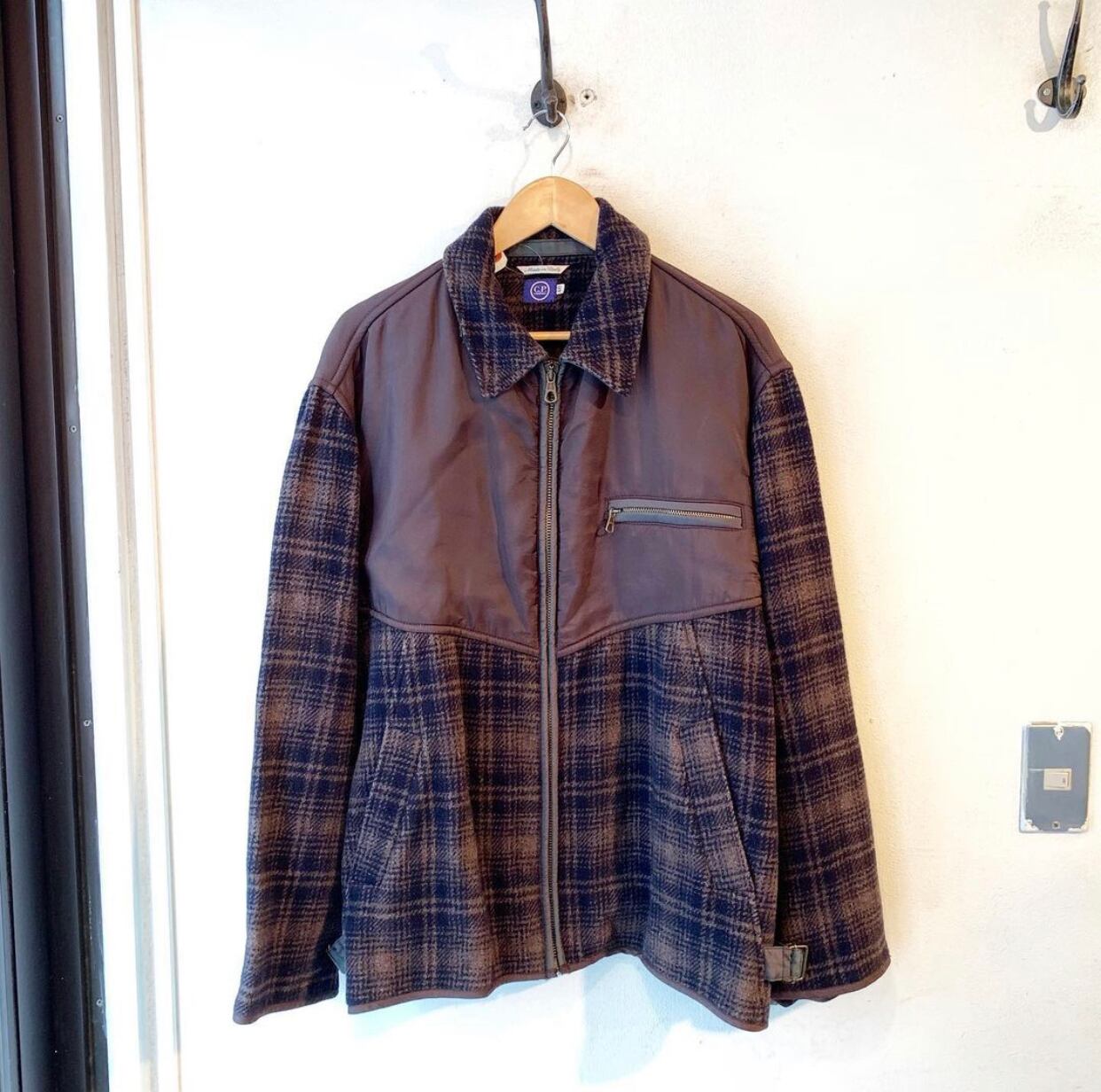 "C.P. COMPANY" ● brown wool&nylon check switch zip up blouson