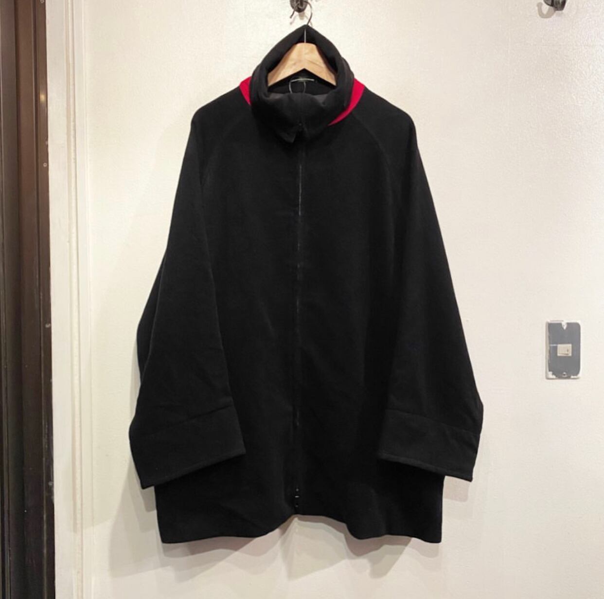 "Y’s" Black×red wool/cashmere high neck design oversized coat