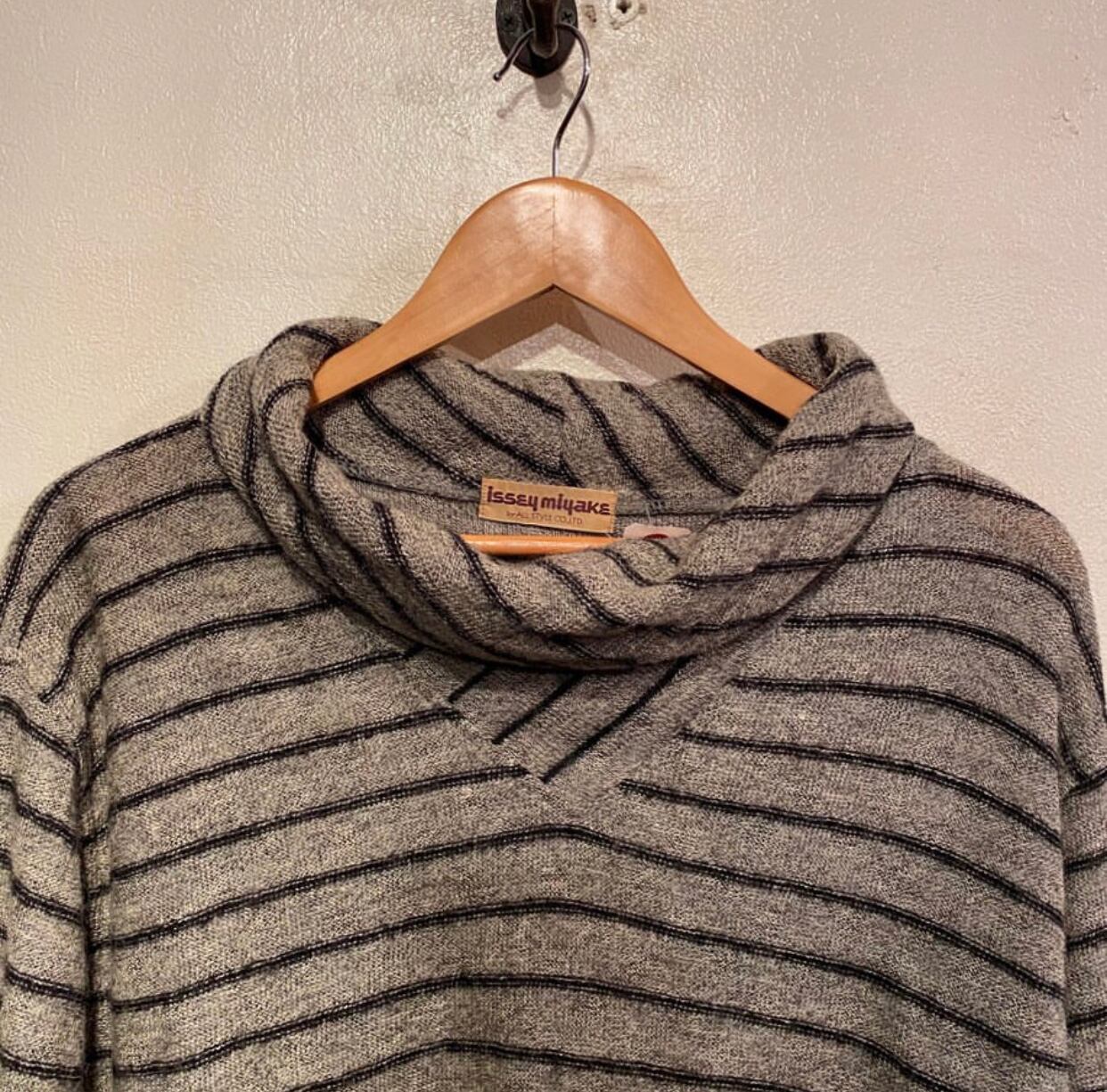 "ISSEY MIYAKE"● Wool/linen/acrylic/nylon unique neck design sweater