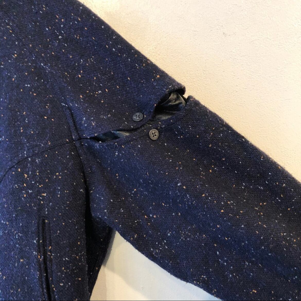 "TETE HOMME" Navy wool/nylon base nep design Unique switch zip up blouson