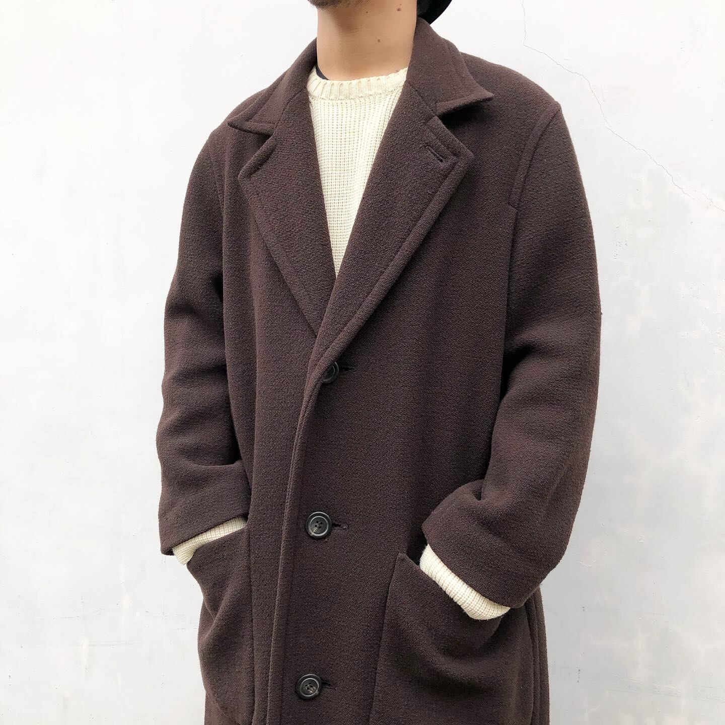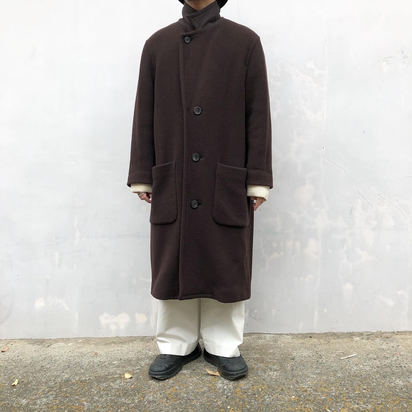"ISSEY MIYAKE" mocha brown wool&nylon oversize long coat