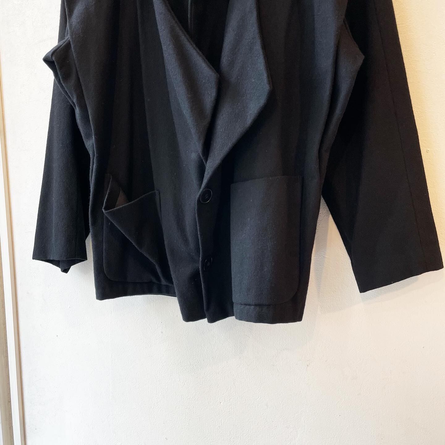 "PASHU" Back logo print design black wool/nylon layered design blouson