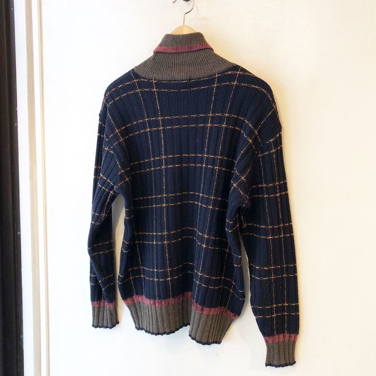 “KENZO" Window pen check pattern wool/rayon/acrylic/nylon turtleneck sweater