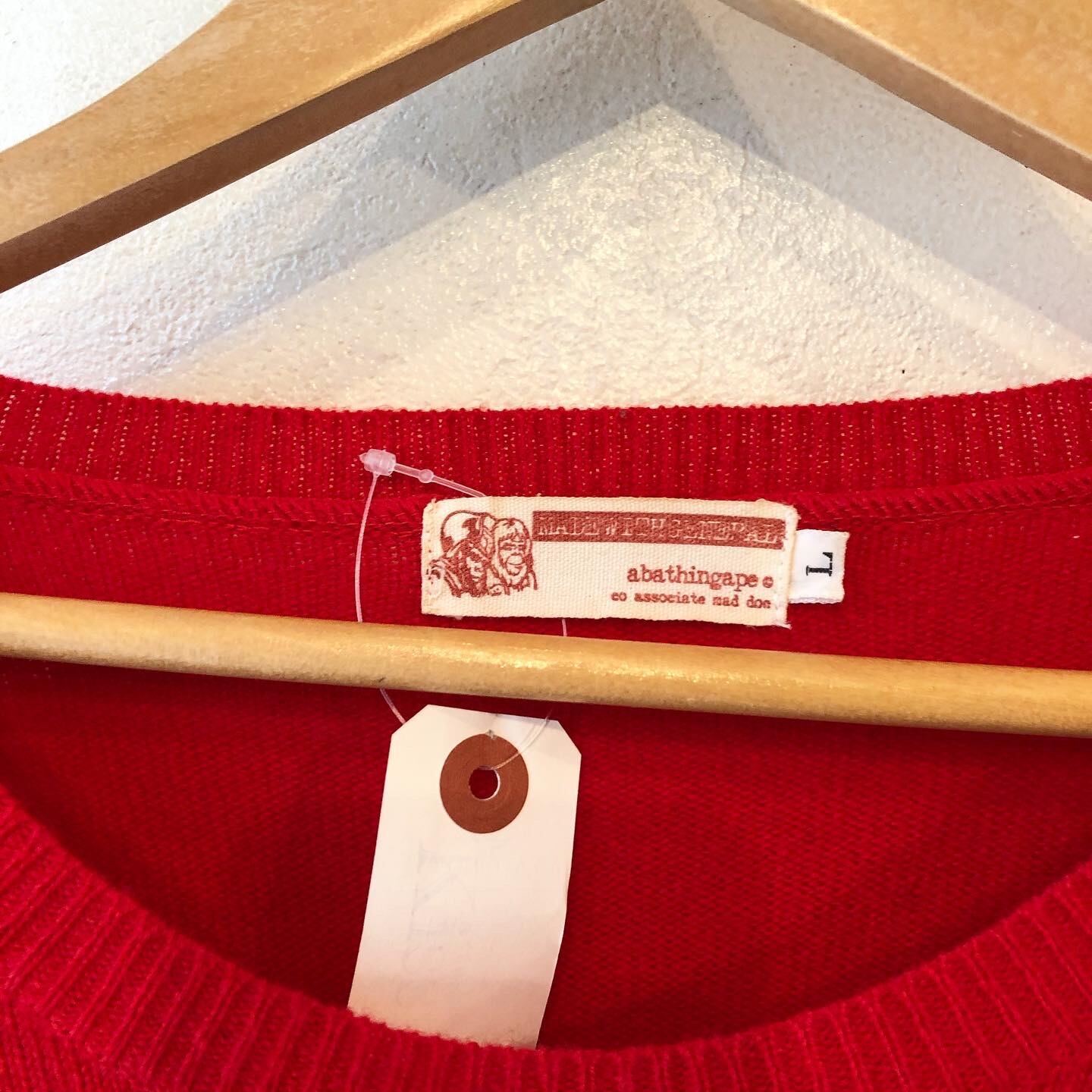 “A BATHING APE" Red wool design argyle sweater