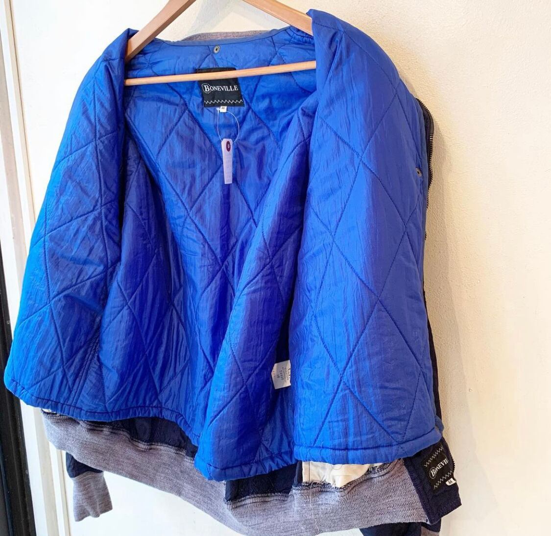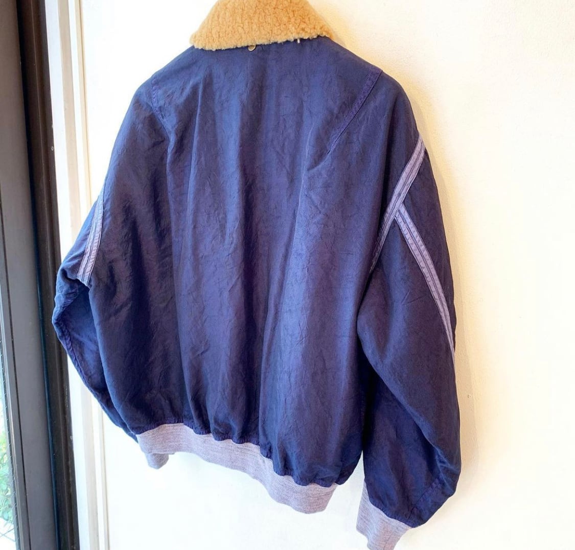 "BONEVILLE" navy metal nylon real mouton collar flight jacket