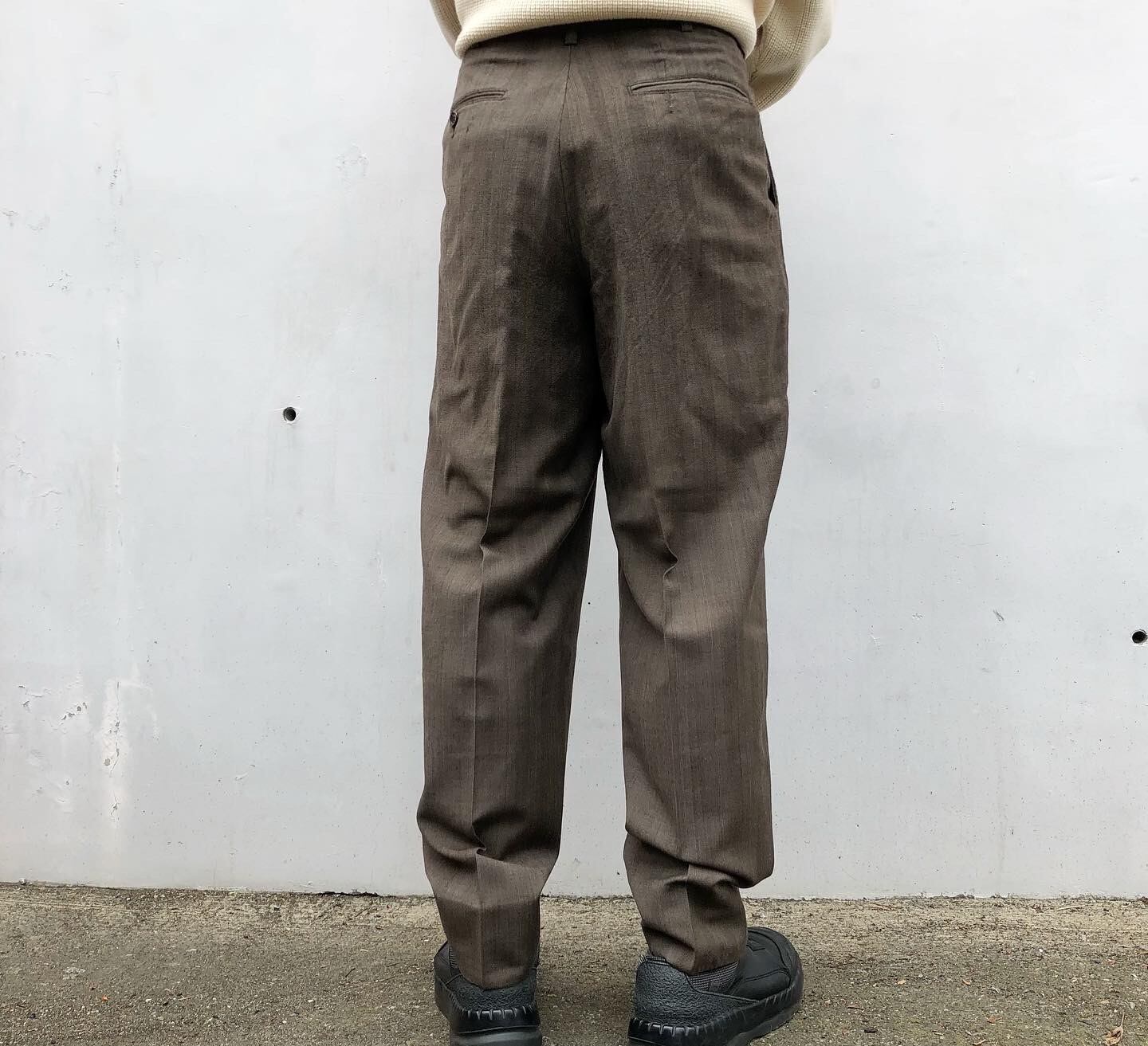 “MEN'S TENORAS" brown herringbone wool dedign 2tack slacks