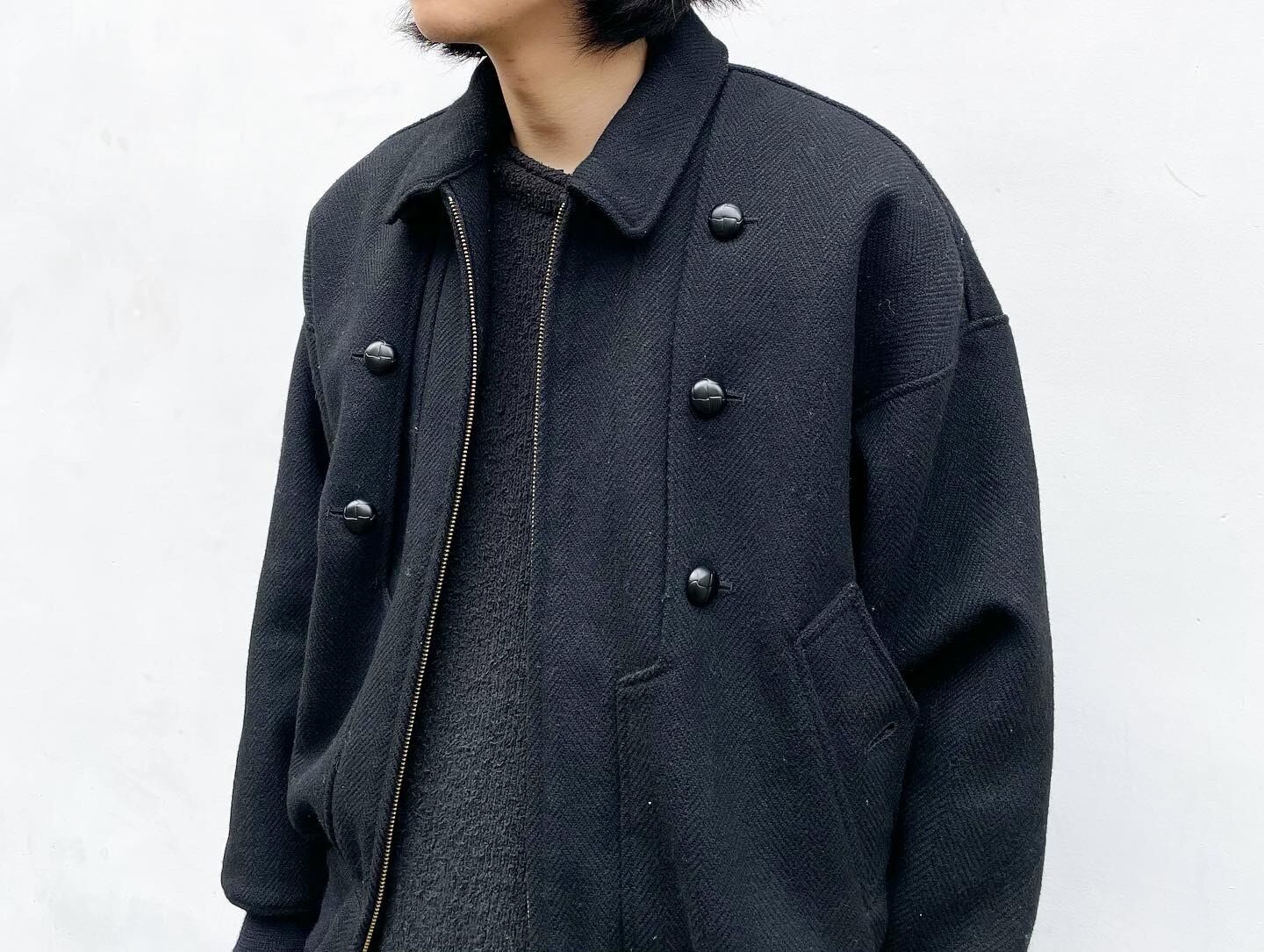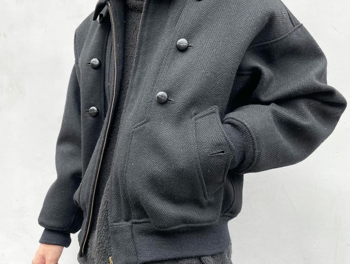 “GRASS MEN’S"● Black wool/nylon oversized design blouson
