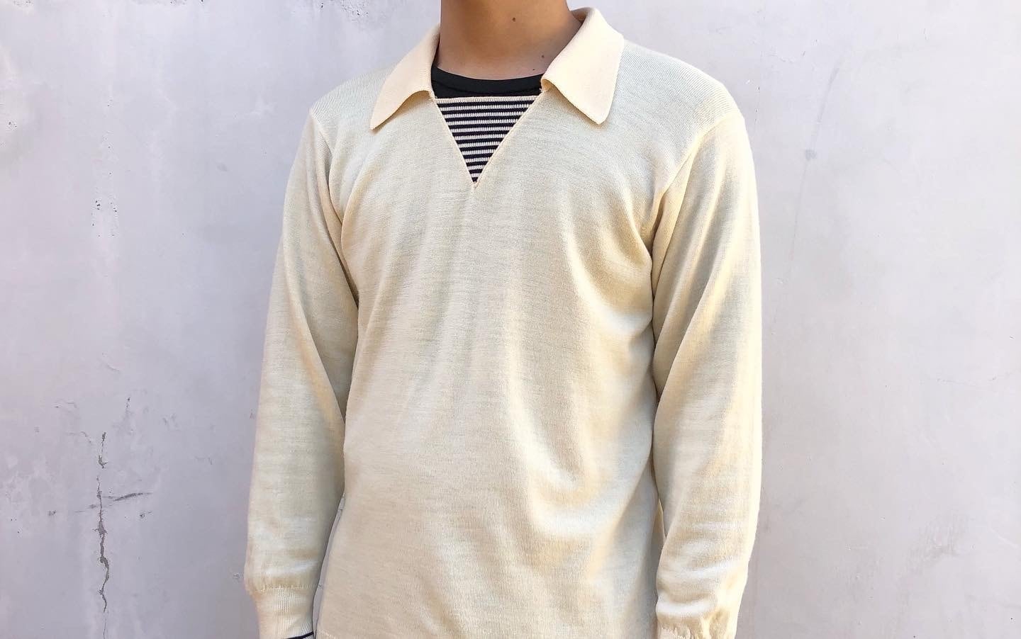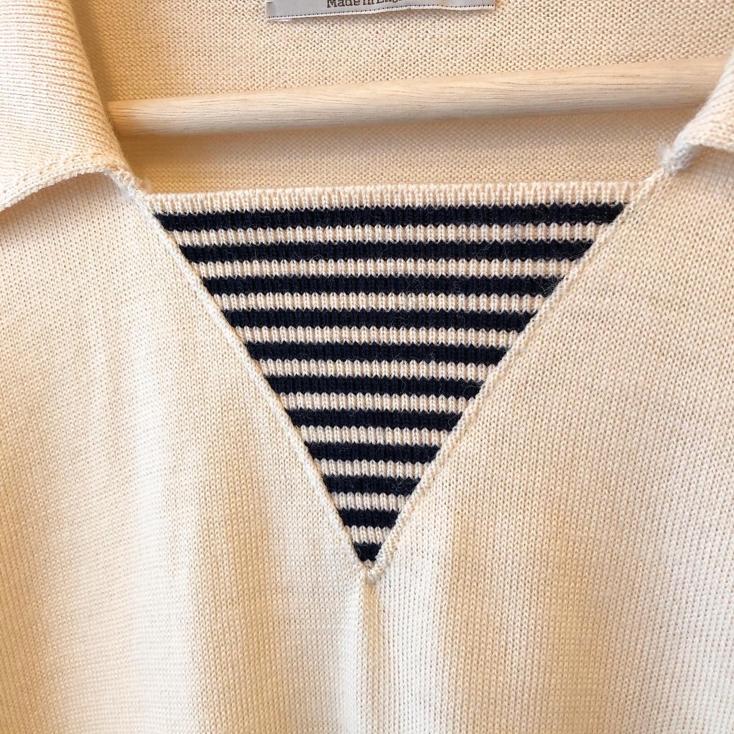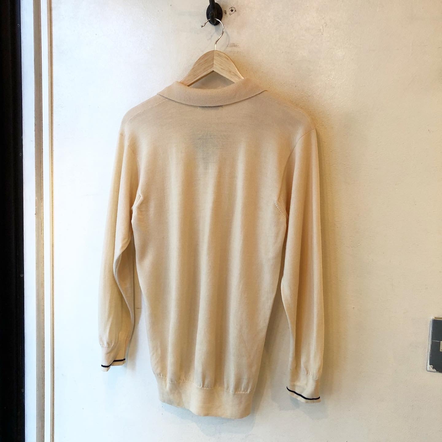 "JOHN SMEDLEY" Ivory wool design knit polo