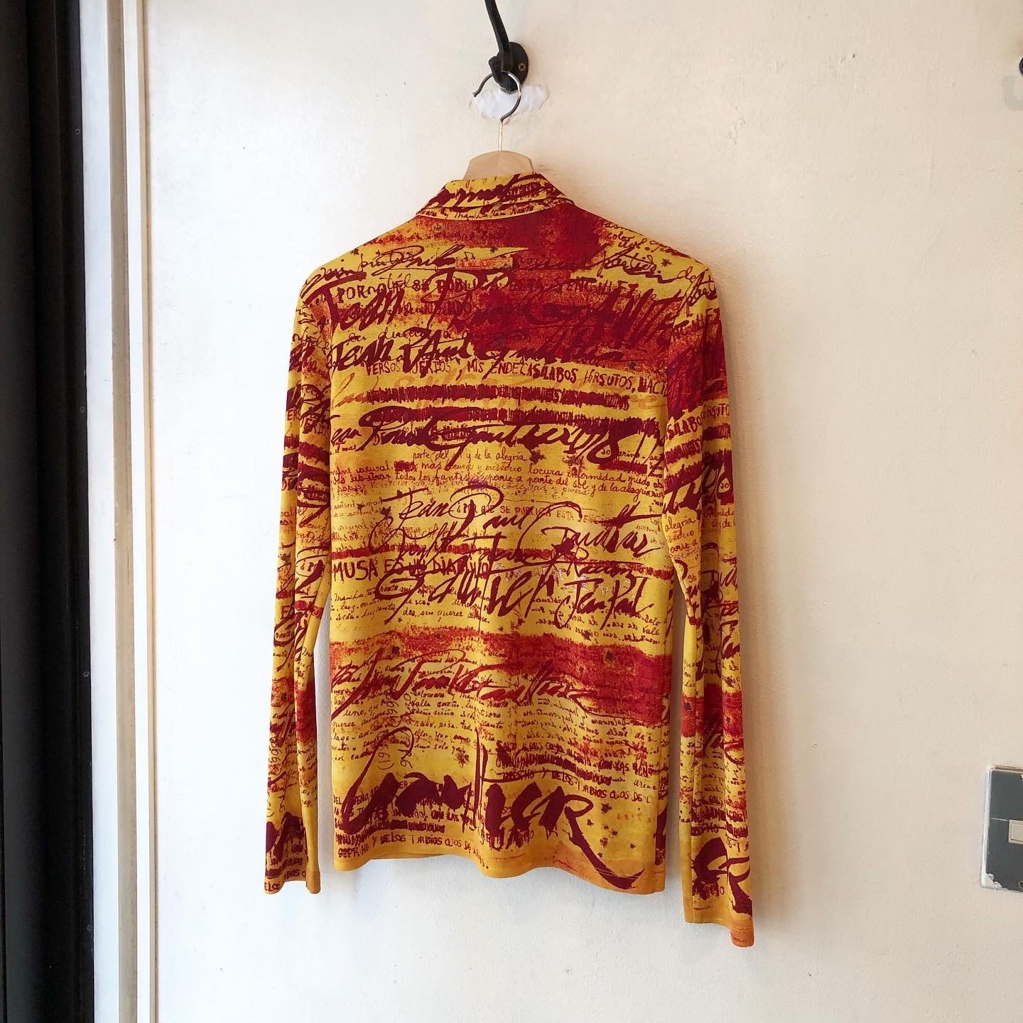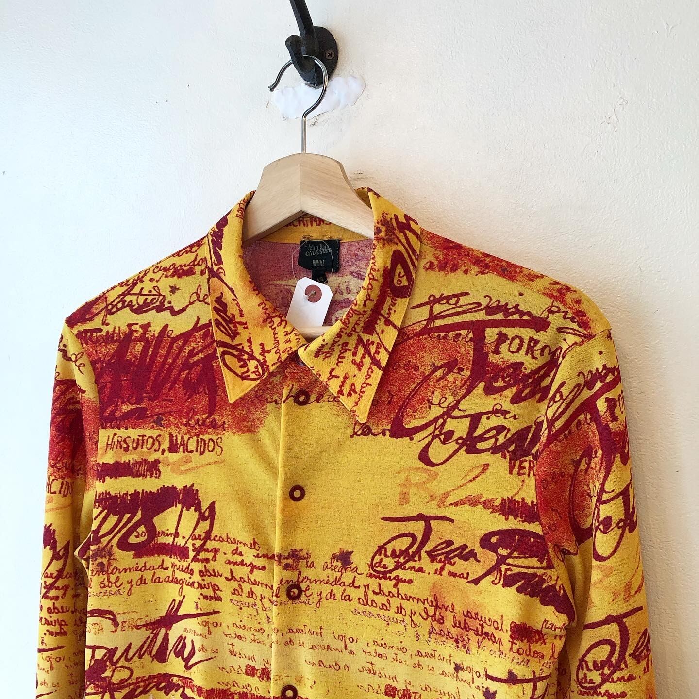 "GAULTIER HOMME" unique pattern polyester design snap button shirt