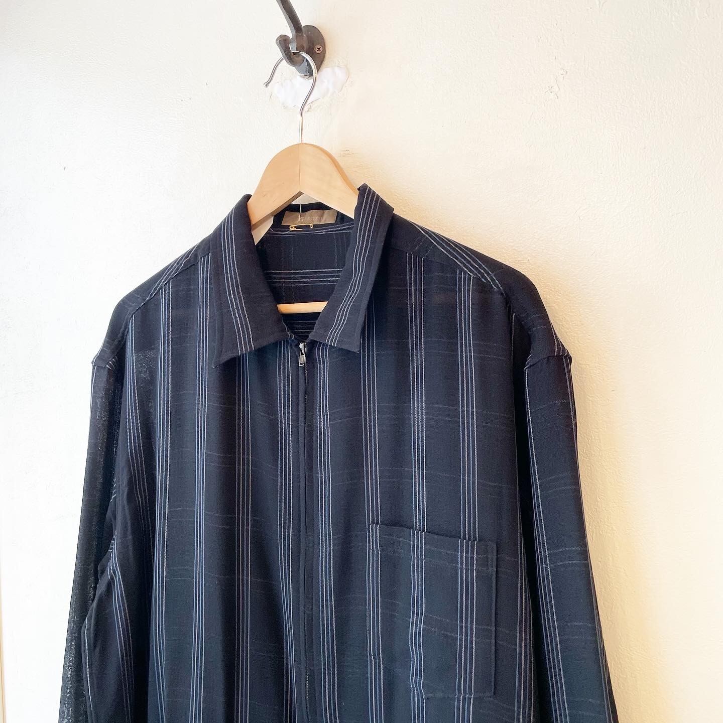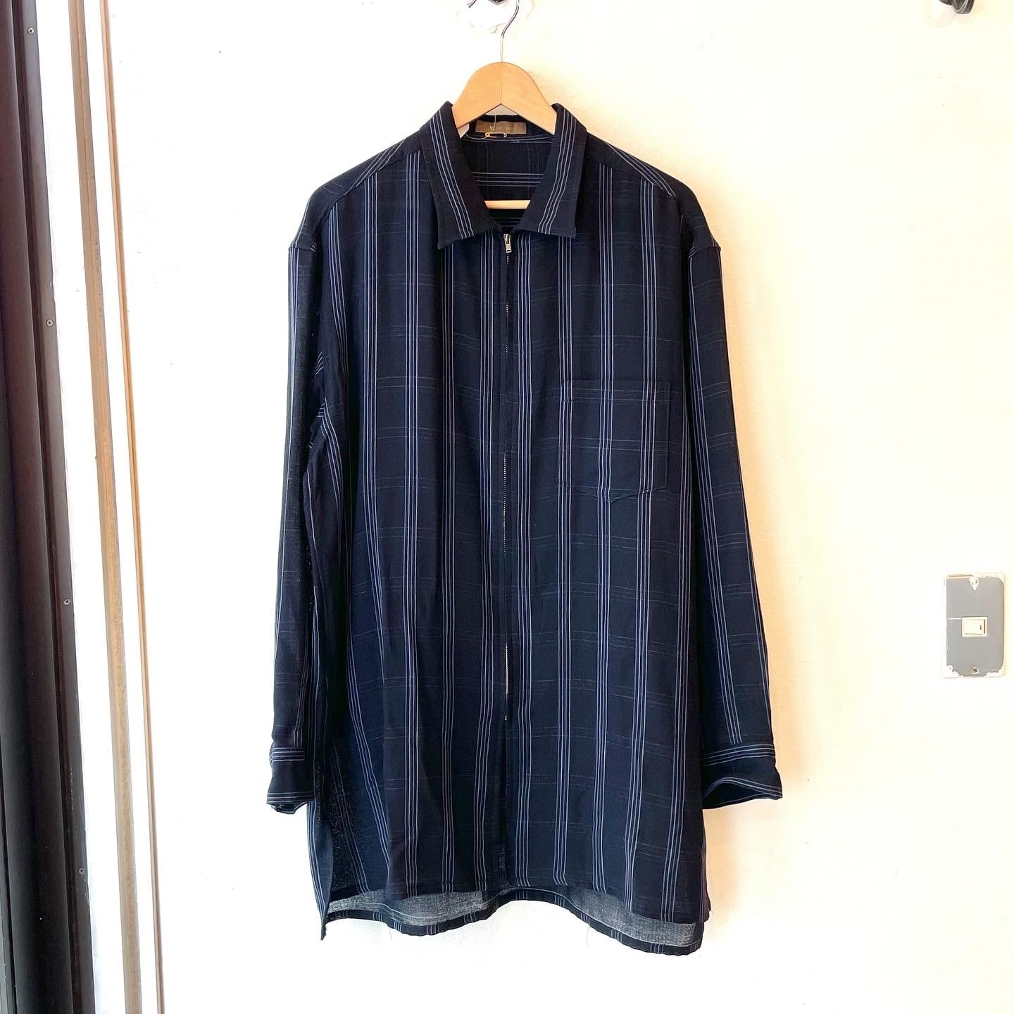 "Y's for men" Check wool/nylon design zip up Long shirt