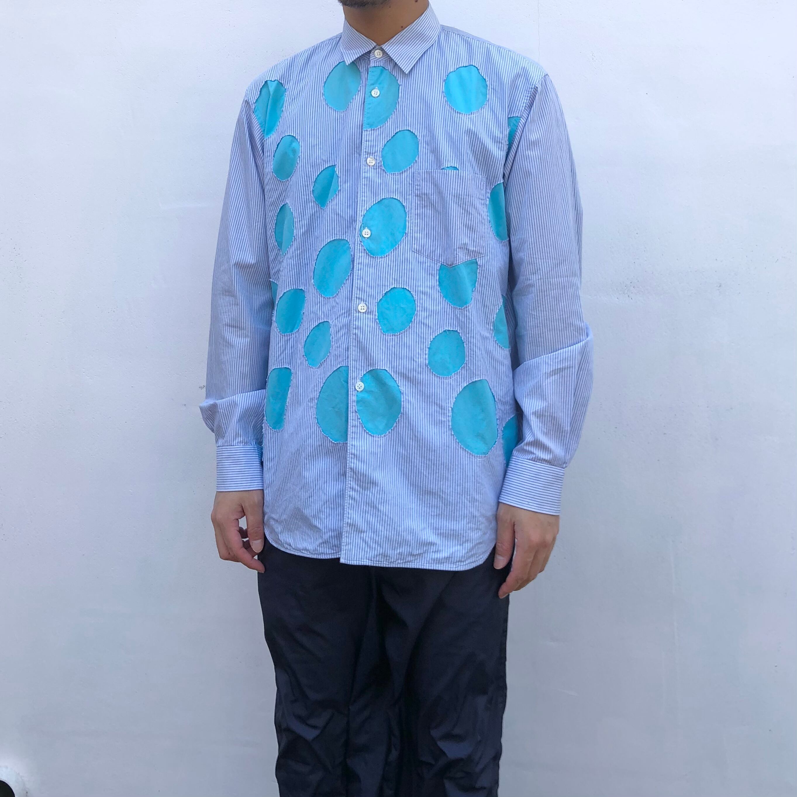 "GARÇONS SHIRT" Stripe cotton design cut off dots L/S shirt