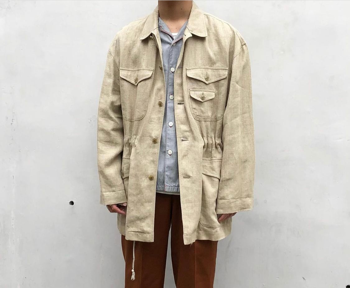 "TAKEO KIKUCHI" Beige linen design safari jacket