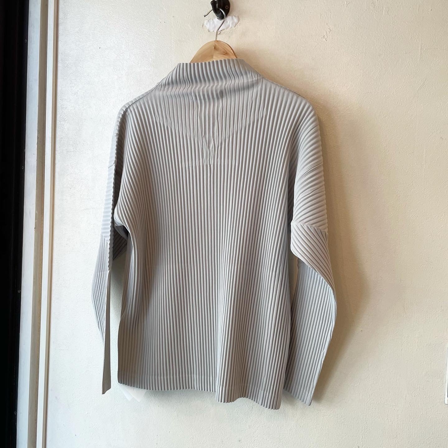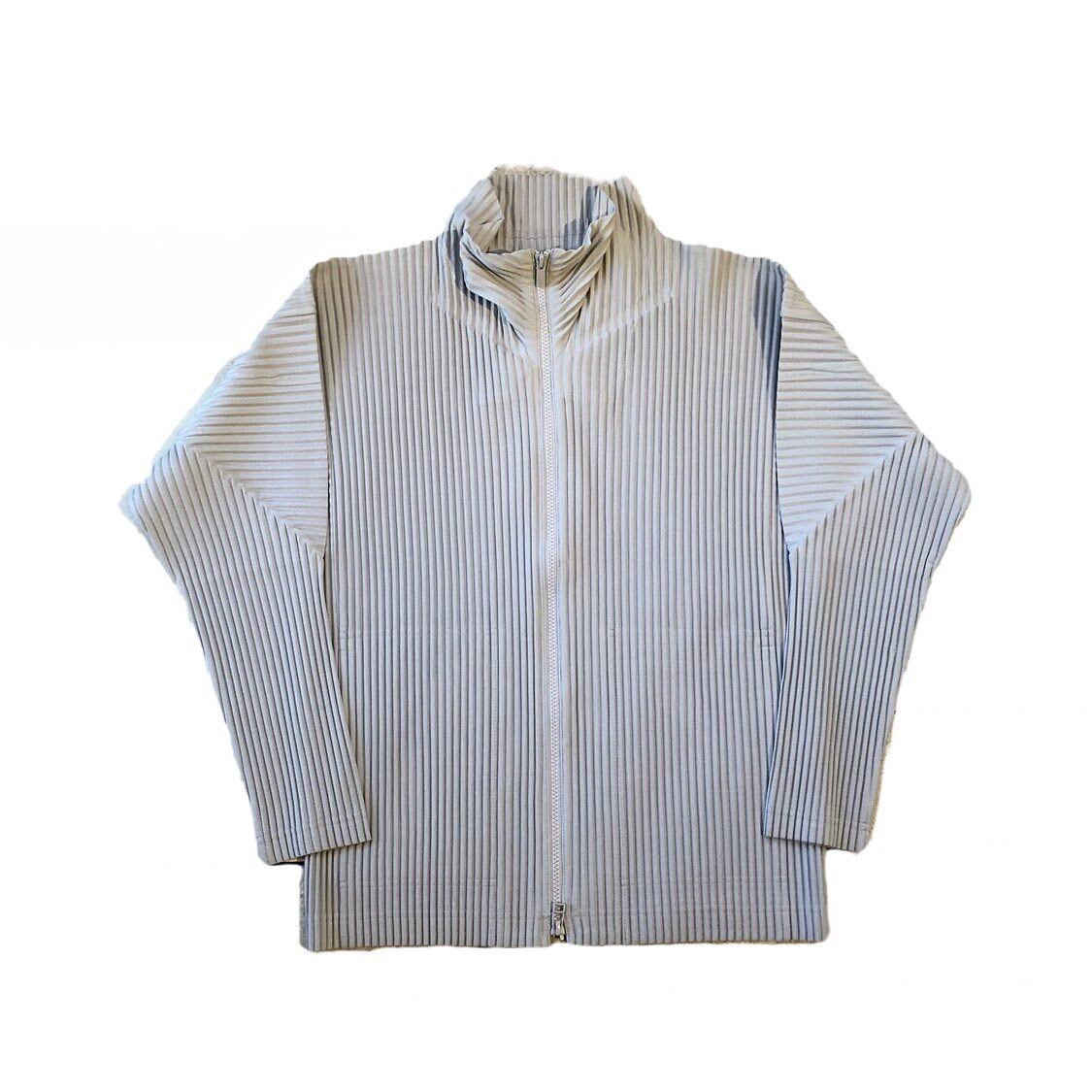 "HOMME PLISSE" Light gray poly pleats design zip up blouson