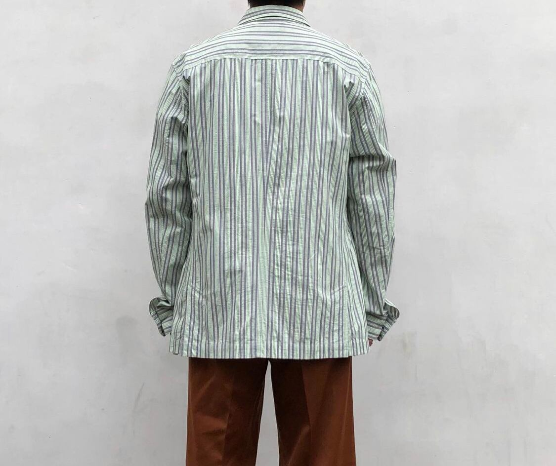 "ISSEY MIYAKE" ● green/gray unique fabric design stripe jacket
