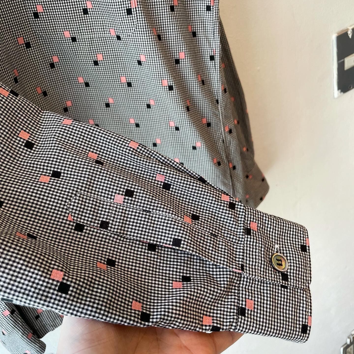 "GARÇONS HOMME" Check cotton design L/S open collar printed shirt