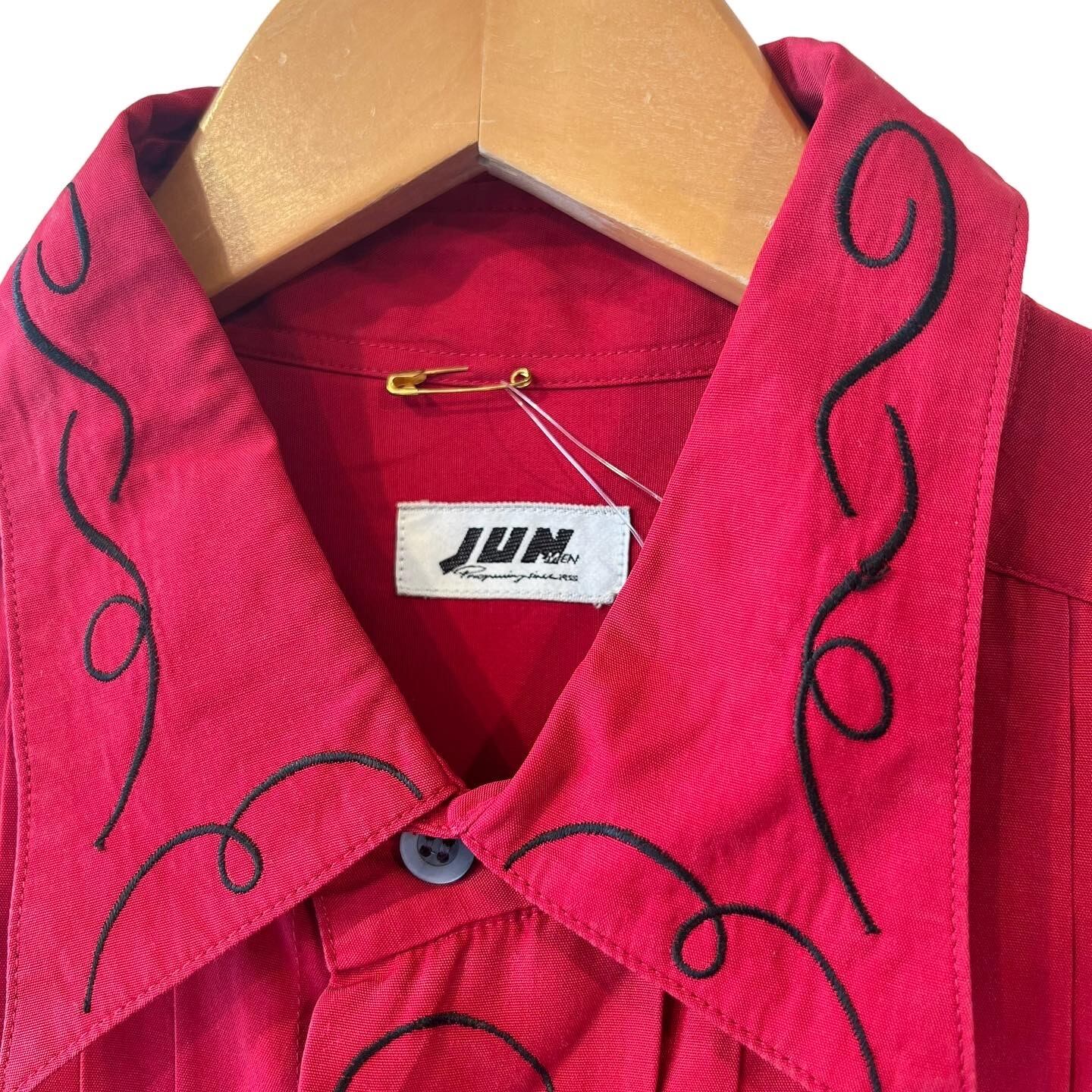 "JUN MEN" Red base embroidery&pin tuck design L/S shirt