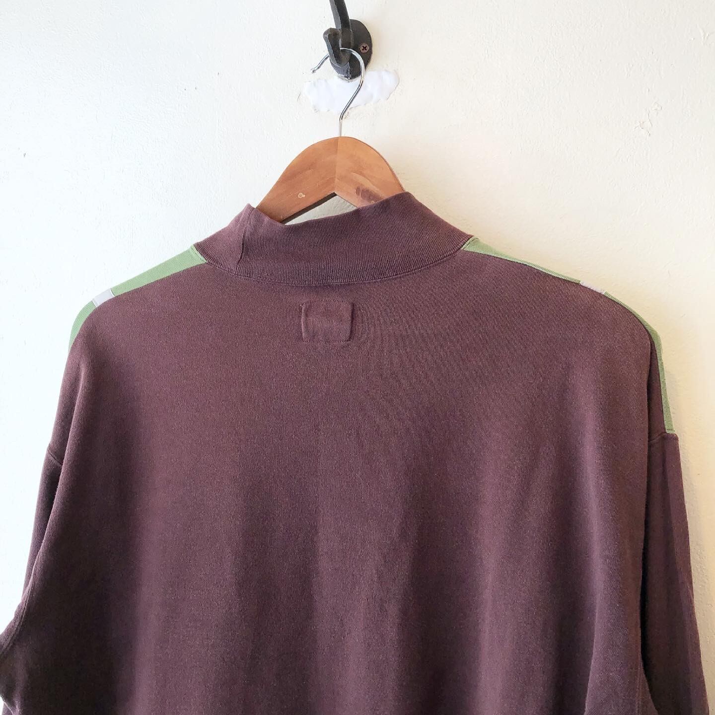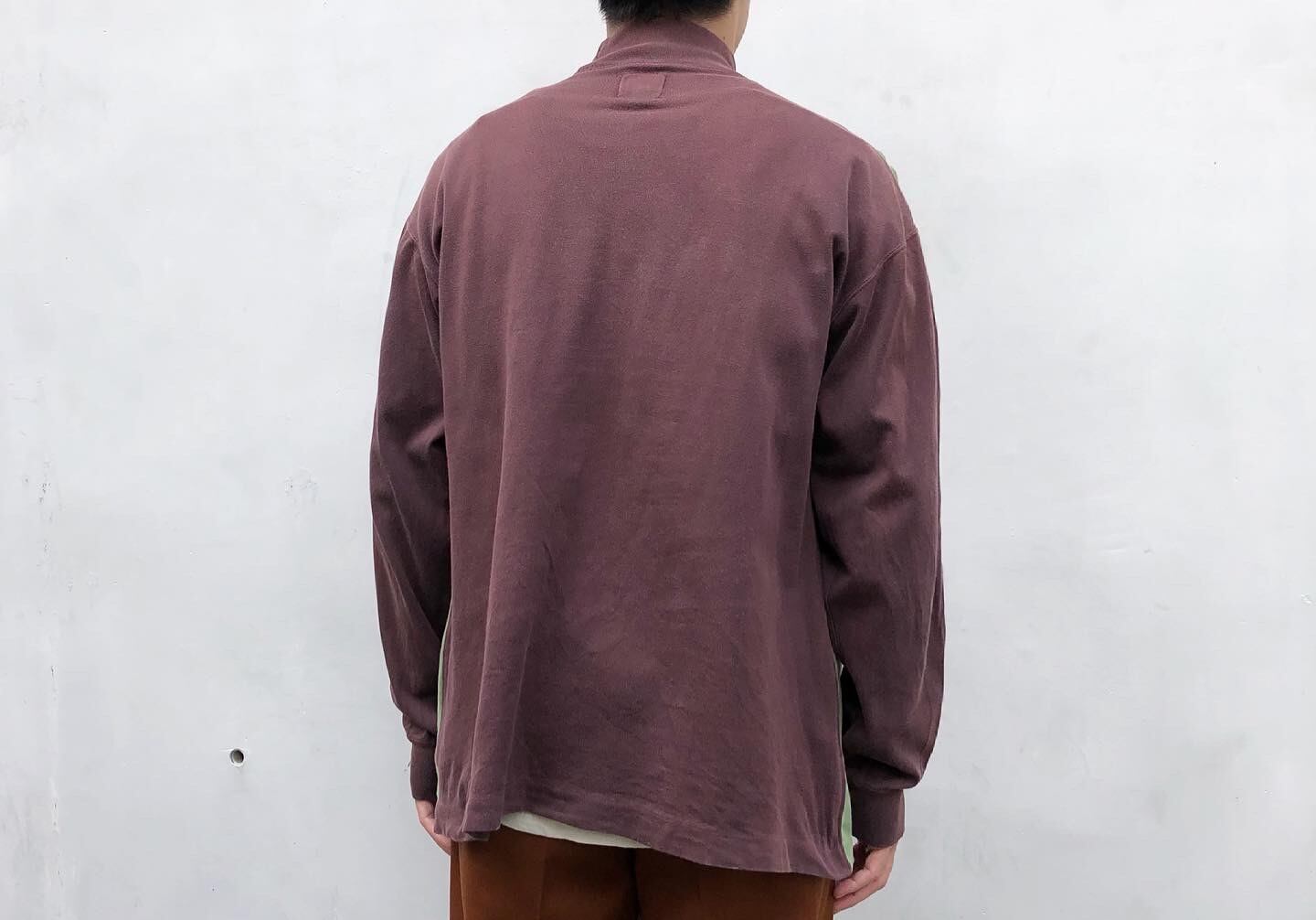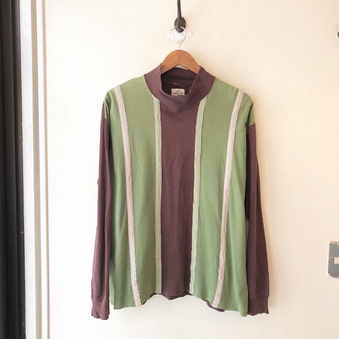 "Y's for men LQ" Brown × lime green cotton design L/S mockneck tee