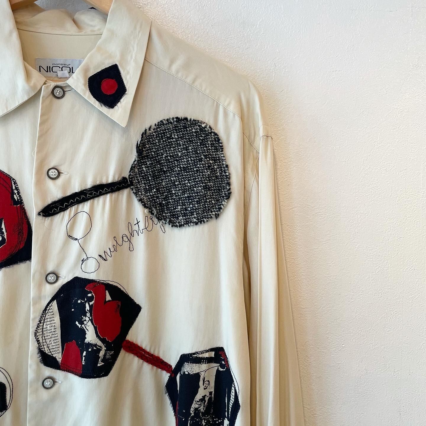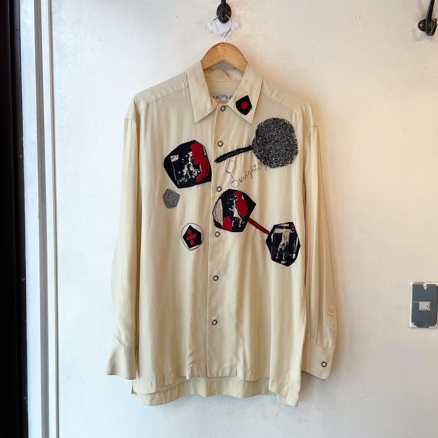 "NICOLE" Beige rayon base unique patchwork×embroidery L/S shirt