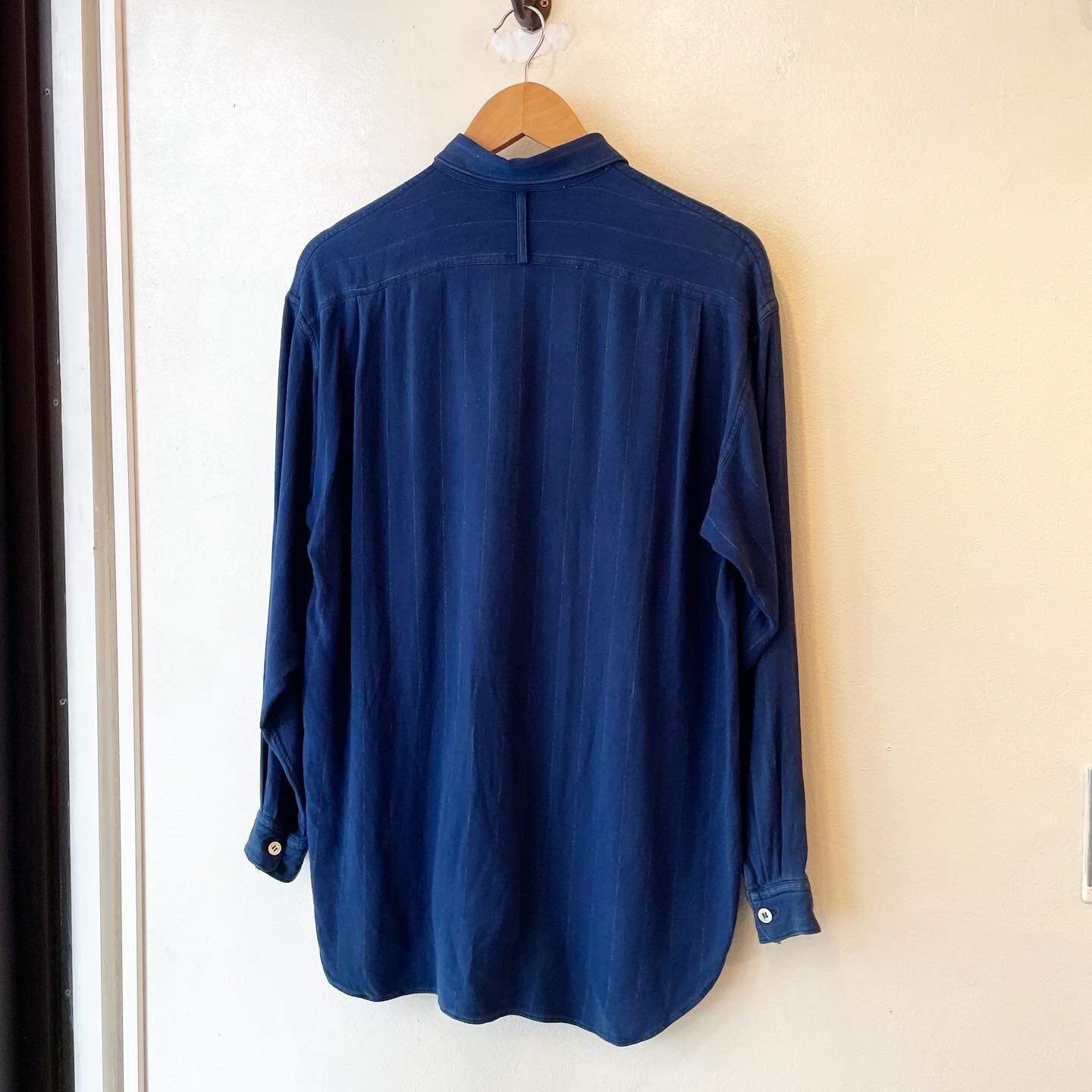"COMME CA DU MODE" Blue rayon design L/S pin stripe shirt