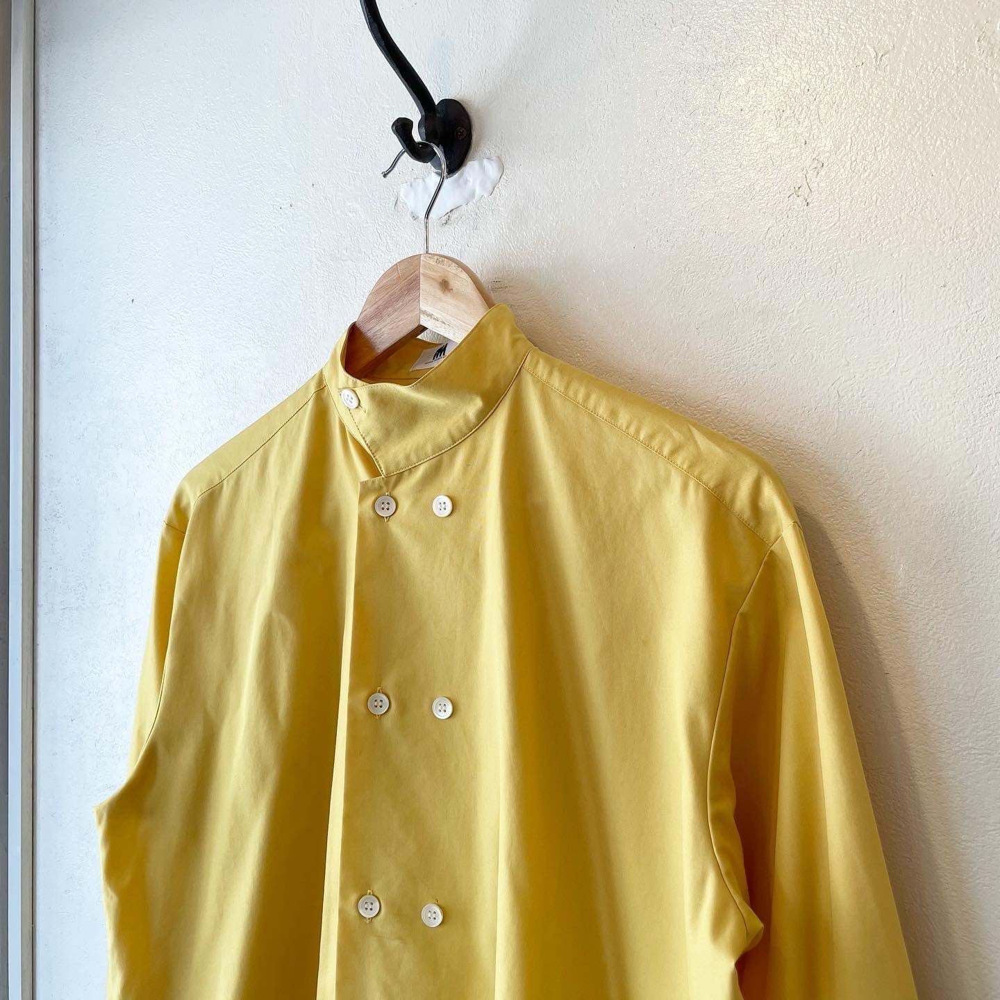 "ISSEY MIYAKE" ● Yellow Cotton design L/S unique front stand collar shirt