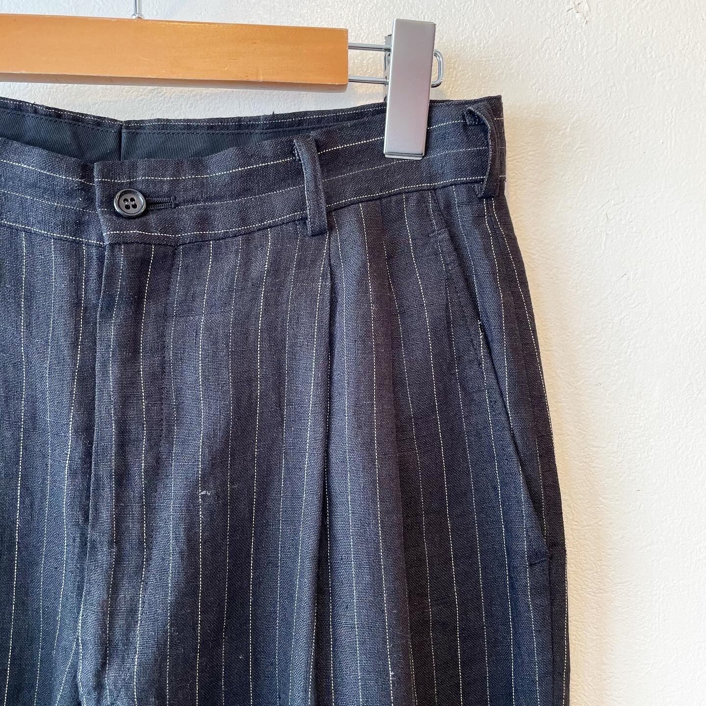 "GARÇONS HOMME" black linen design 2-tuck stripe pants