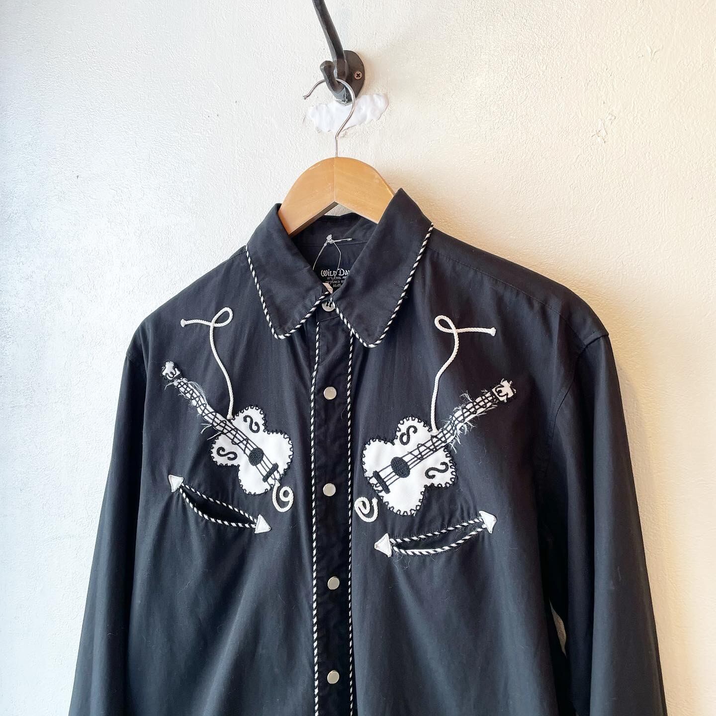 "WILD DANCER" Black cotton design piping& embroidery L/S rockabilly shirt