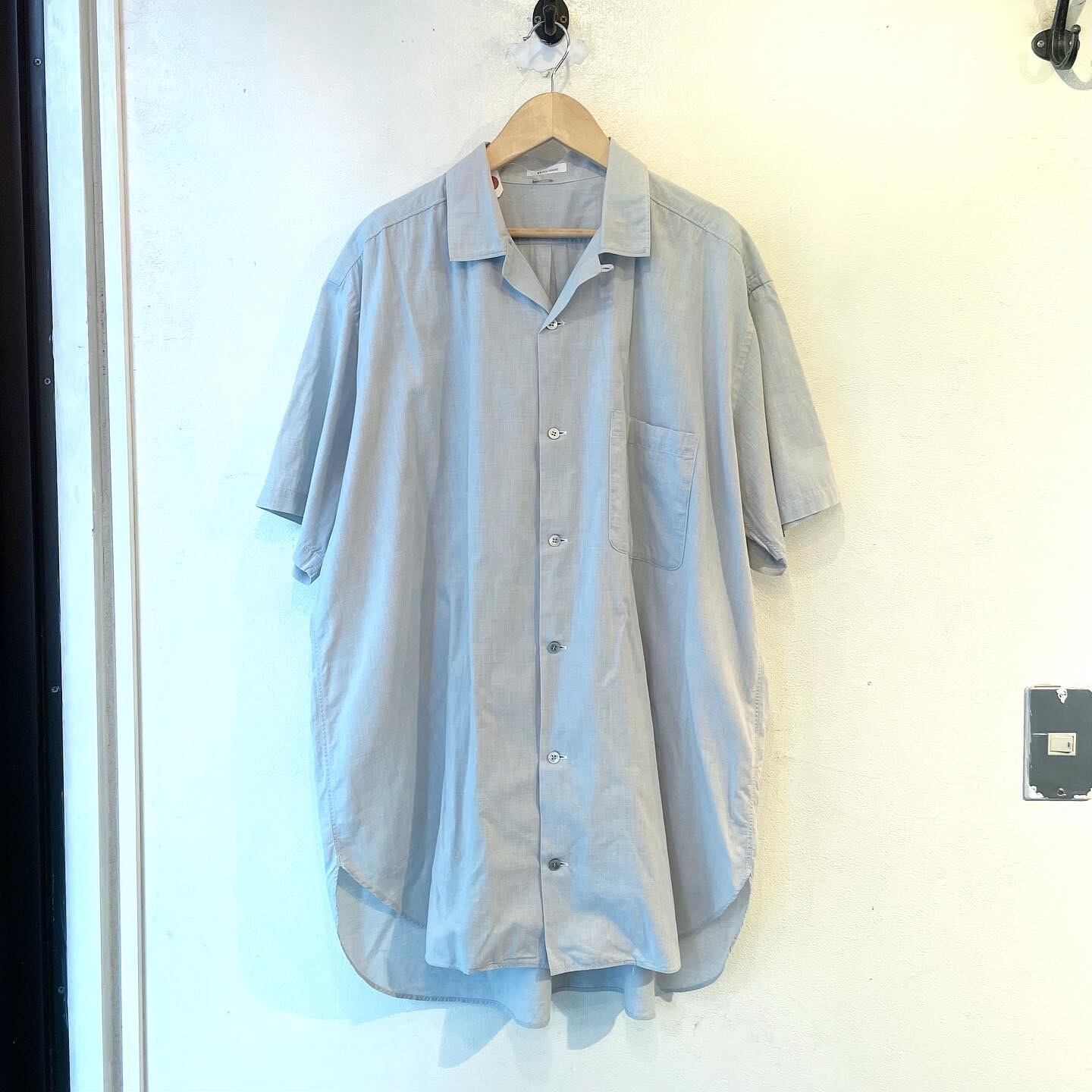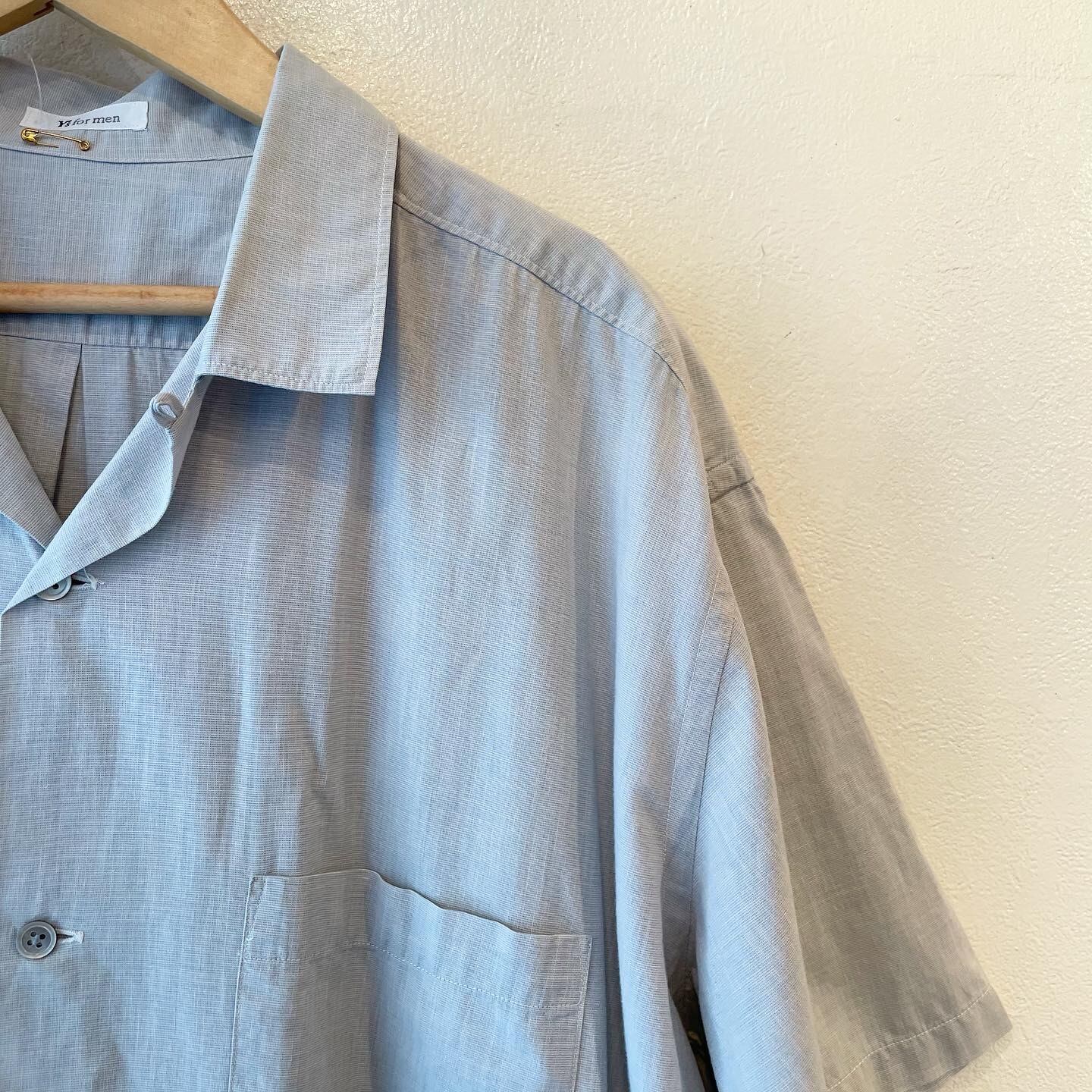 "Y's for men" Gray cotton design S/S open collar shirt