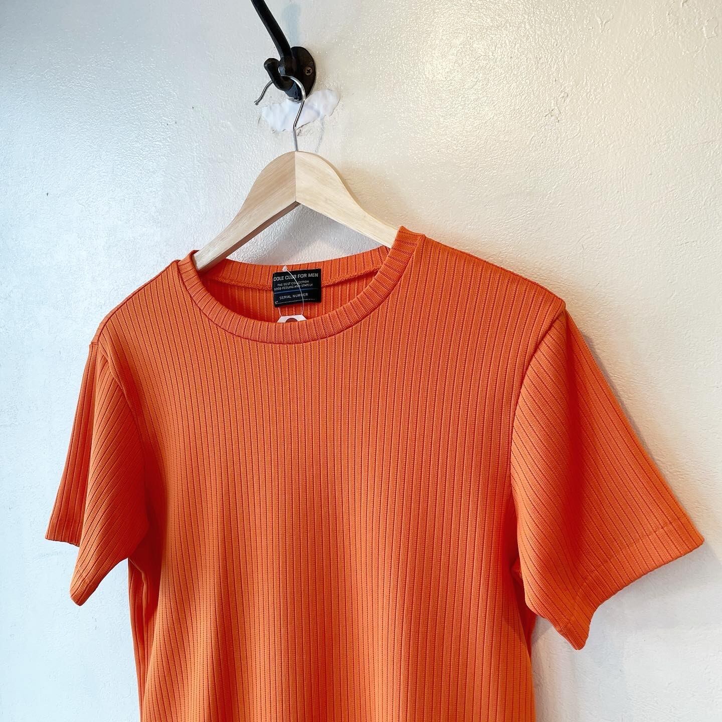"NICOLE CLUB" Orange dedign S/S rib knit T-shirt