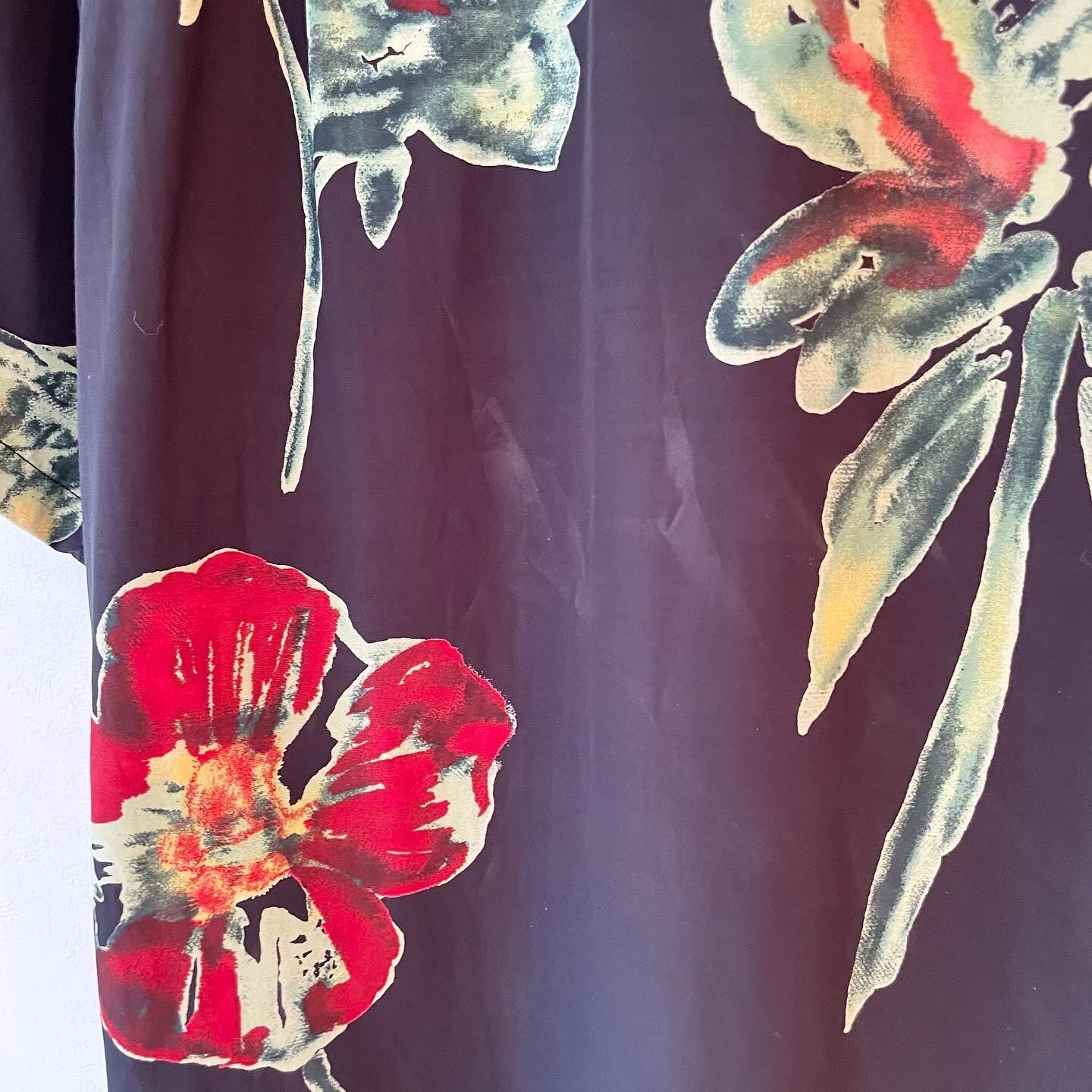 "TAKEO KIKUCHI" Flower pattern rayon design S/S open collar shirt