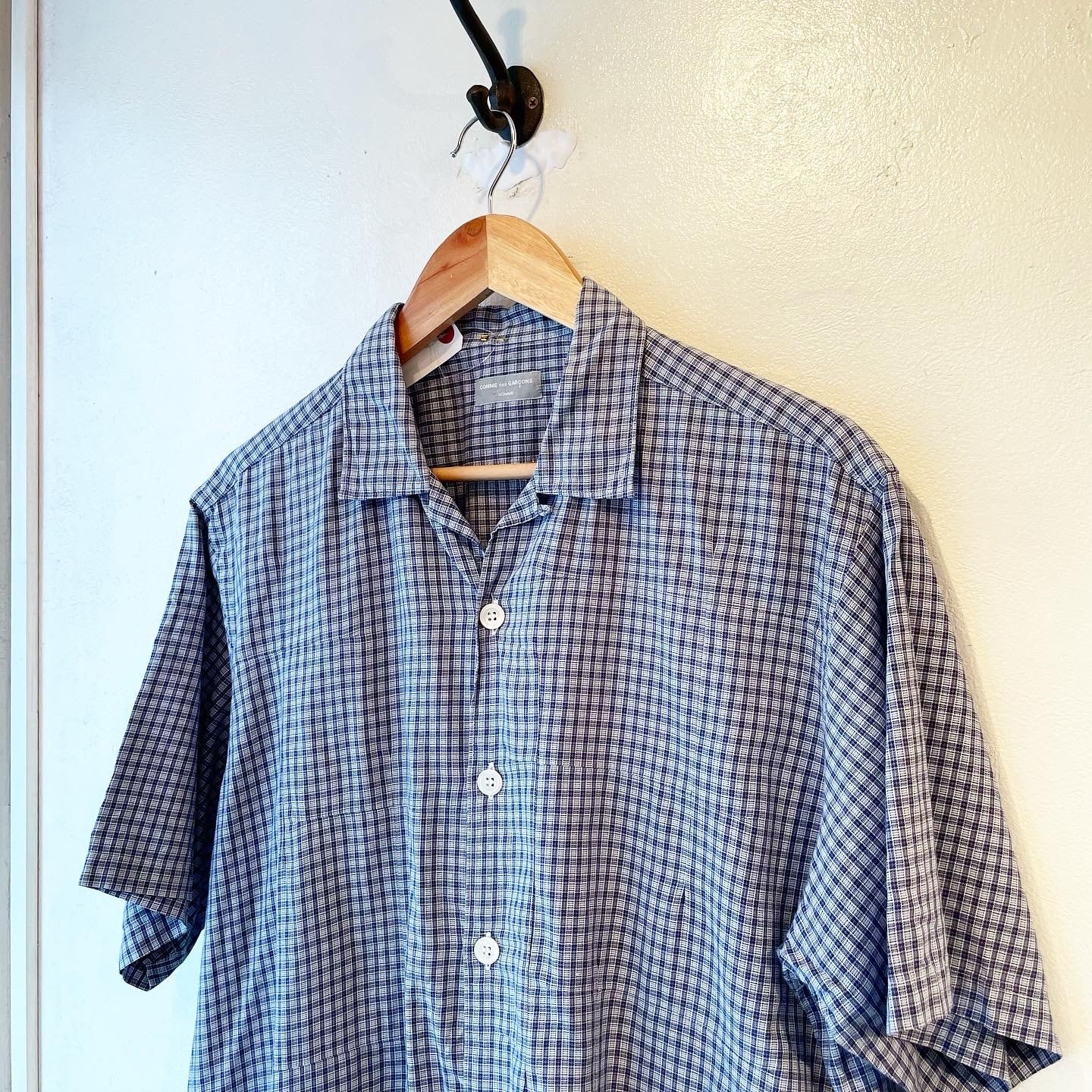 "GARÇONS HOMME" Check cotton design S/S open collar shirt