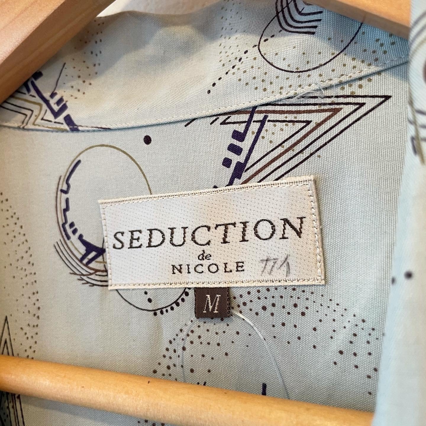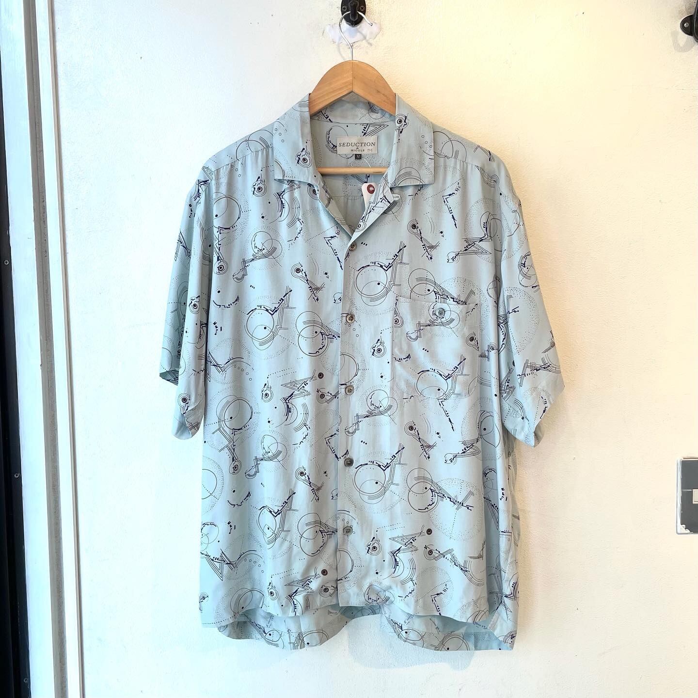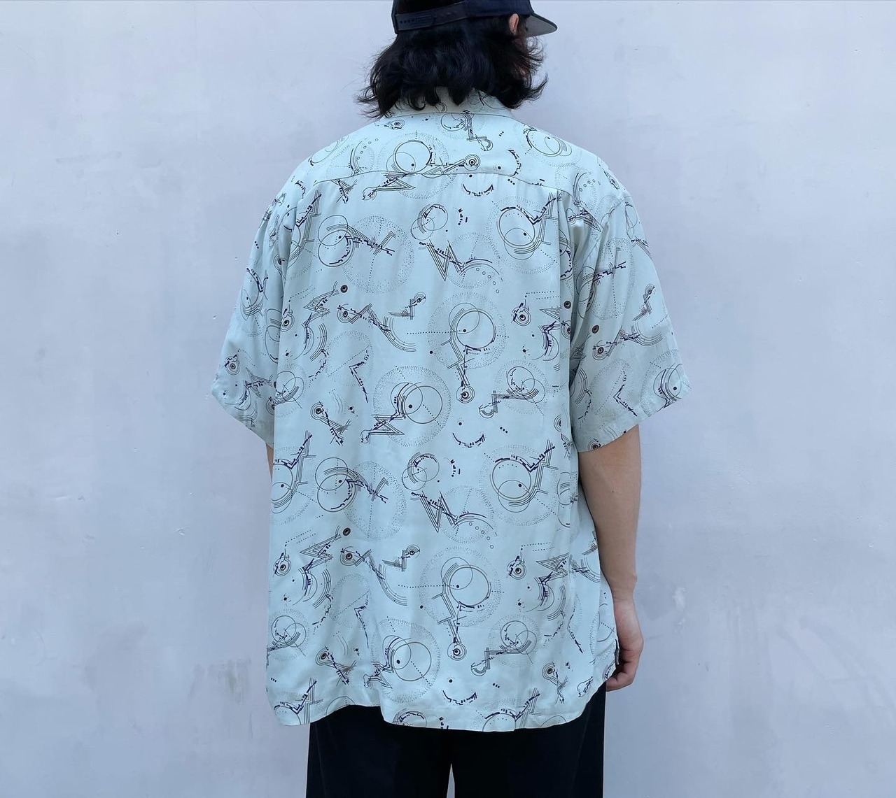 "NICOLE" Ice blue base Art pattern rayon design S/S open collar shirt
