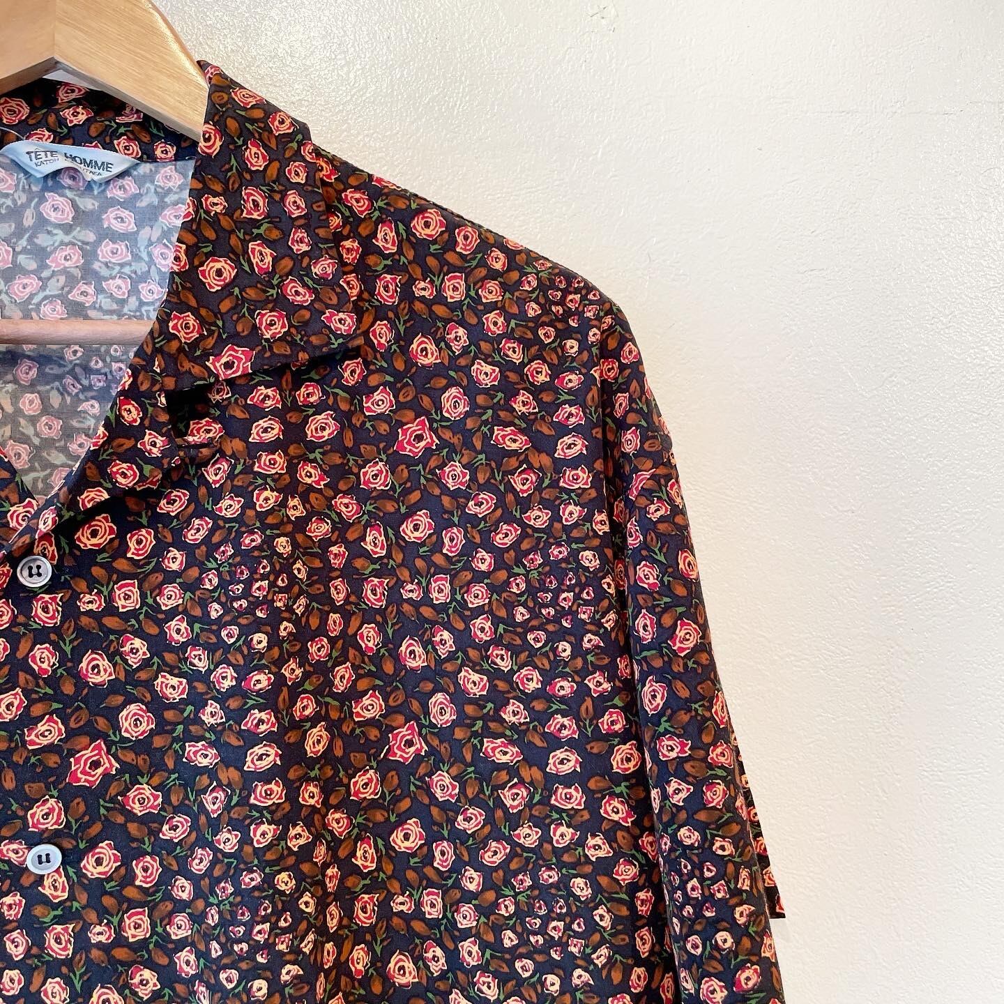 "TETE HOMME" psychedelic rose pattern rayon S/S open collar Shirt