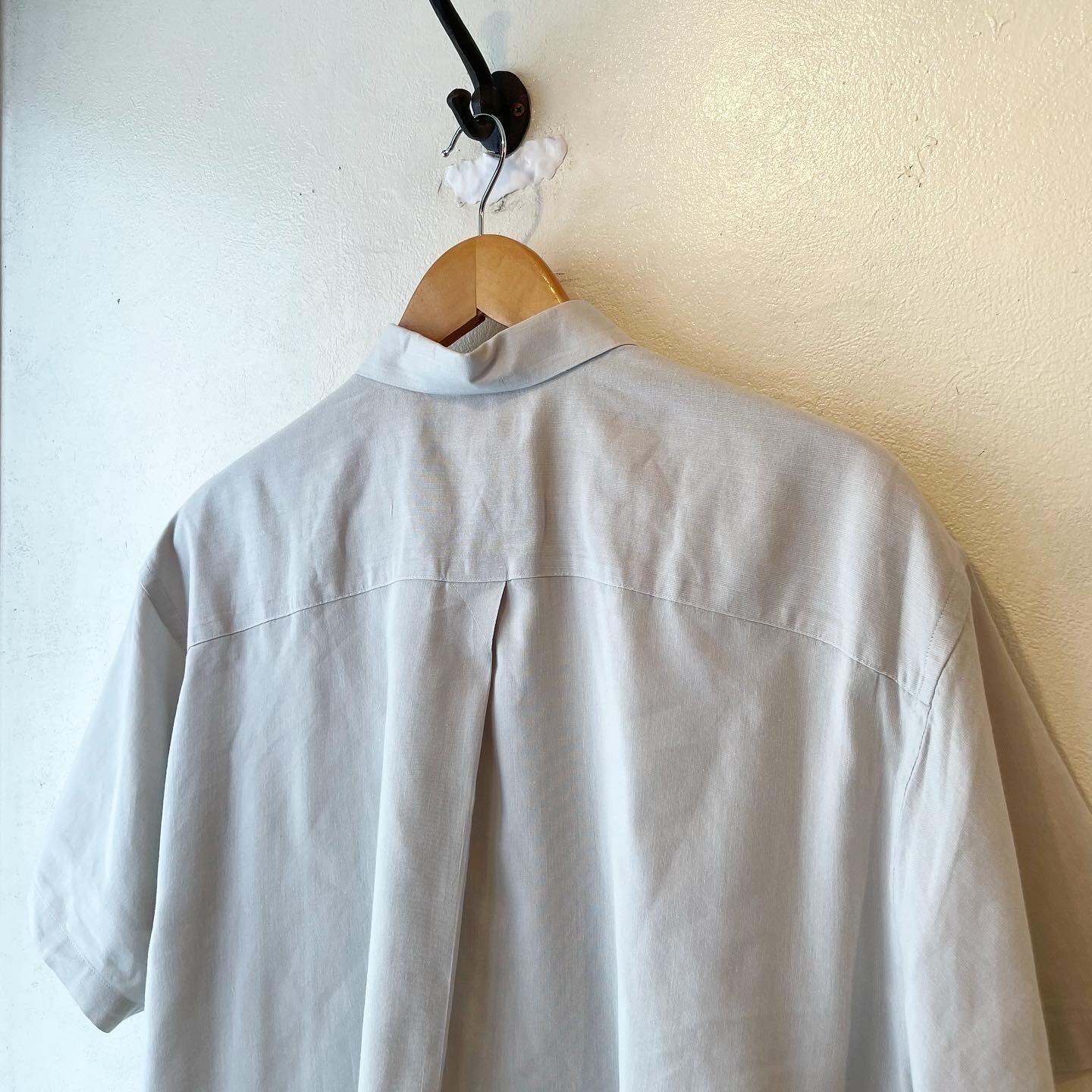 "ISSEY MIYAKE" ● Gray cotton/linen/rayon design S/S shirt