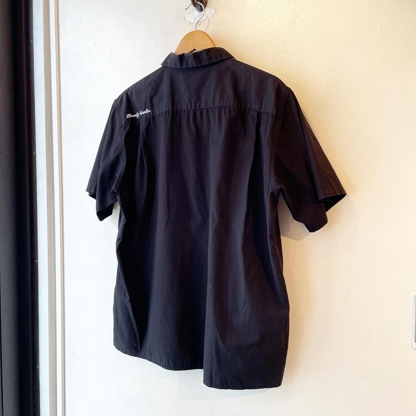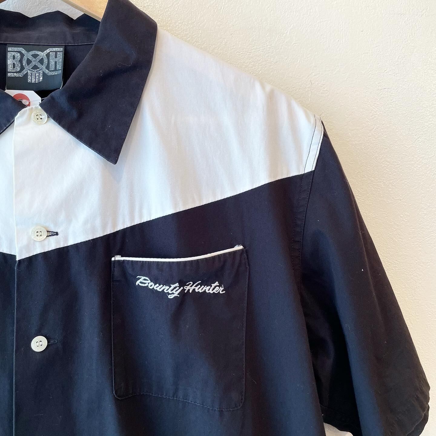 "BOUNTY HUNTER" ● Black×white cotton design S/S embroidery switch shirt