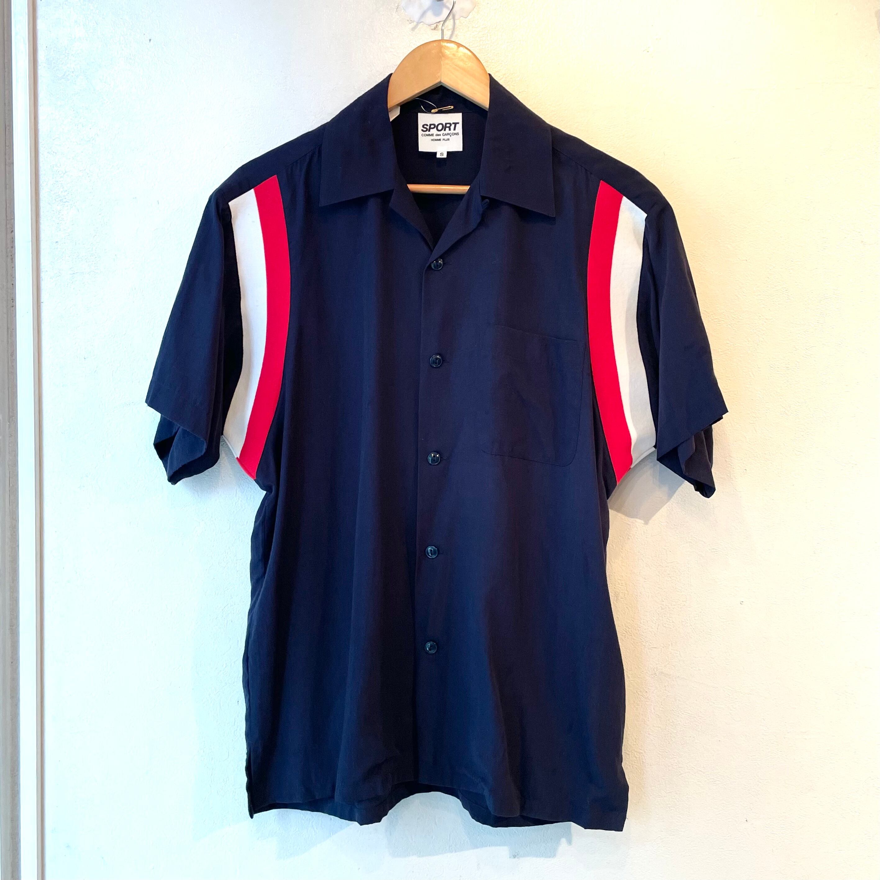 "GARÇONS HOMME PLUS SPORT"Navy Rayon design S/S lib switch open collar shirt