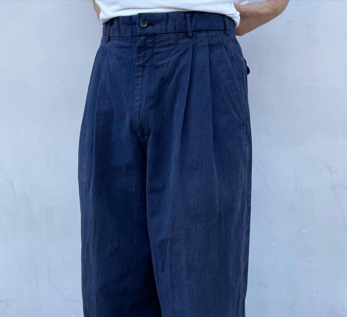 "GARÇONS HOMME PLUS" Navy Cotton design 2-tuck slack pants